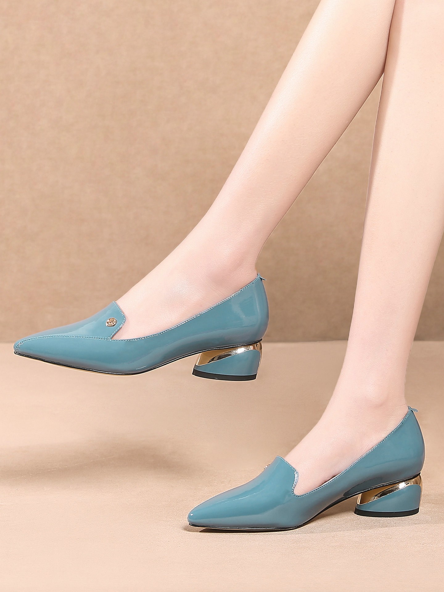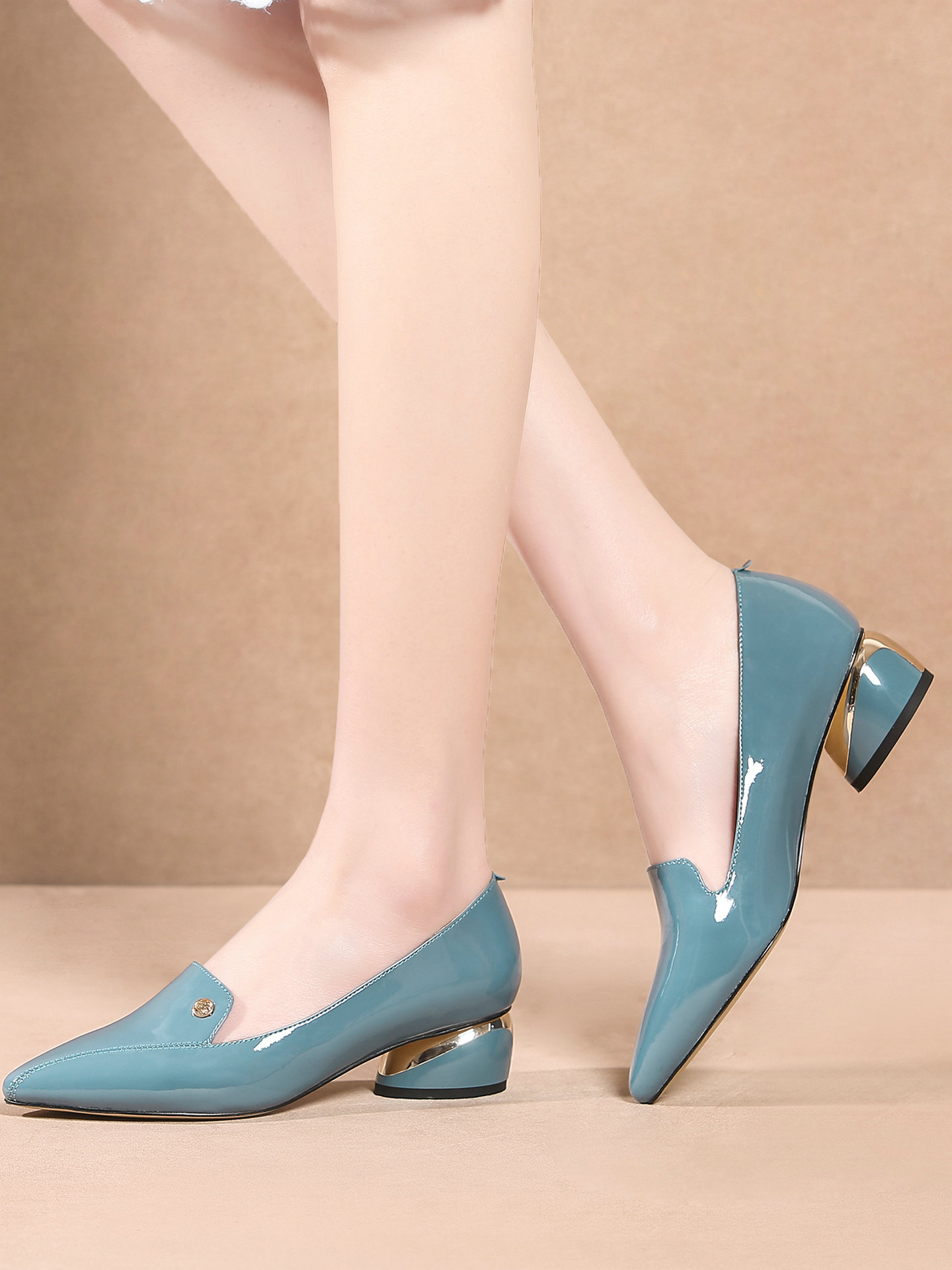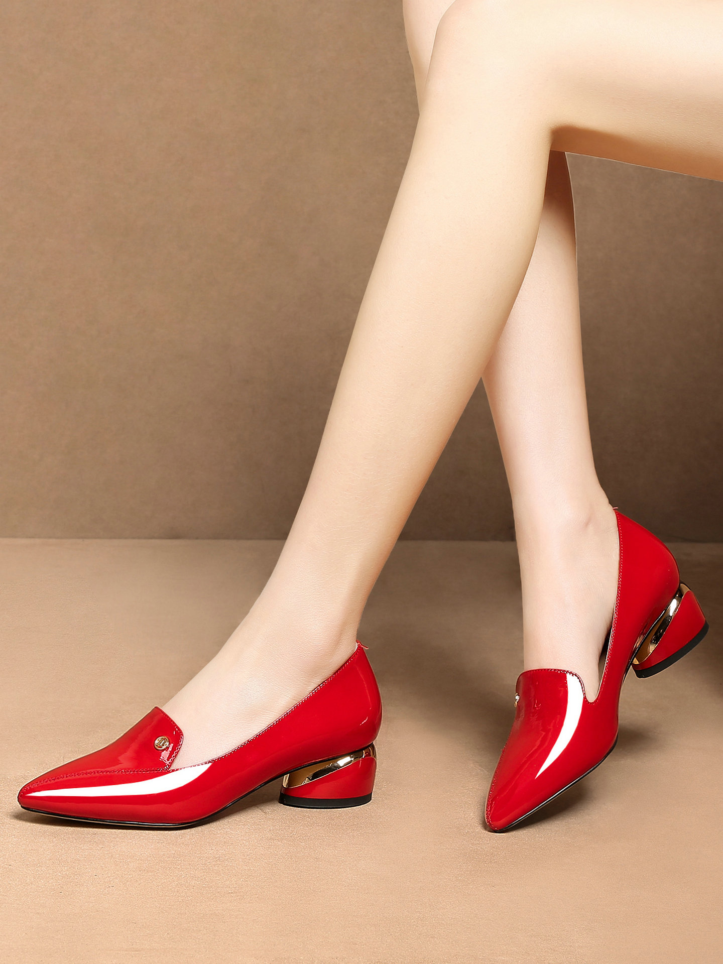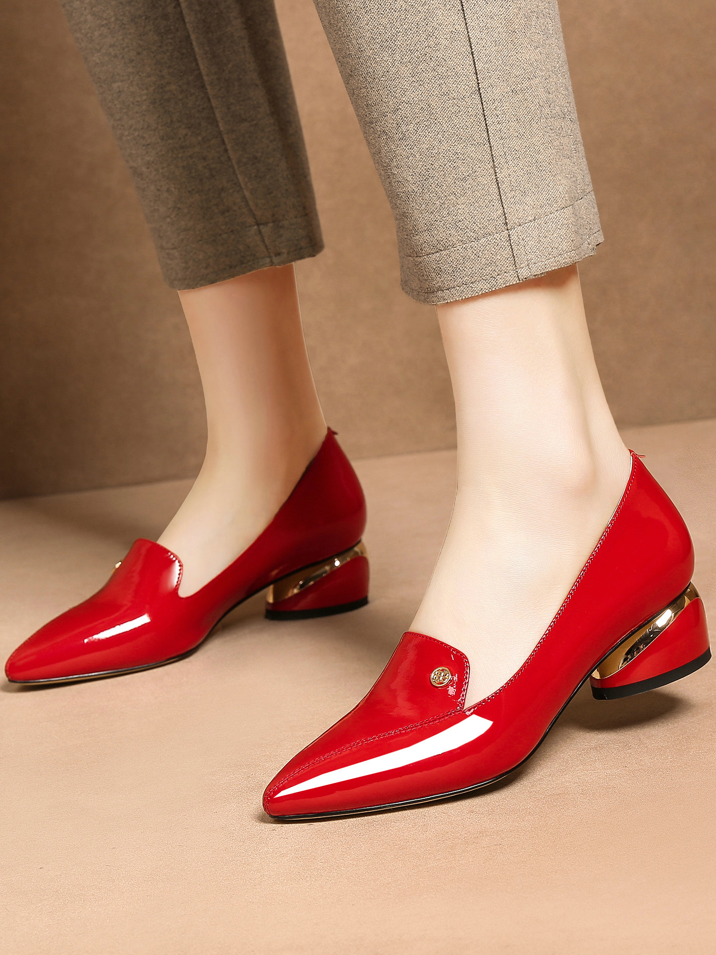 Приобретите продукты для женской плоской туфли с заостренным пальцем, первым слоем кожи, толстой каблуки, многоцелевые модные женские туфли, весенняя и осенняя женская обувь весны и осень-большой большой размер