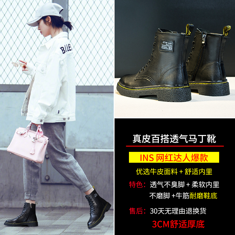 Martens, Tide, летние тонкие универсальные дышащие короткие сапоги на платформе в английском стиле, 2020, из натуральной кожи, в британском стиле