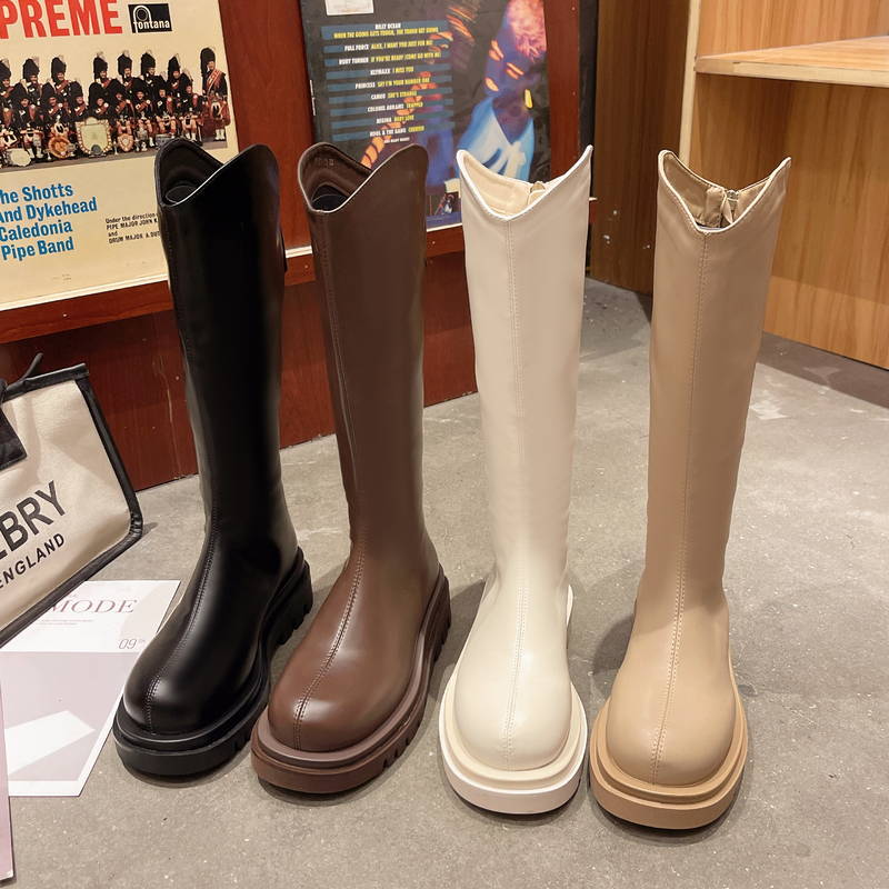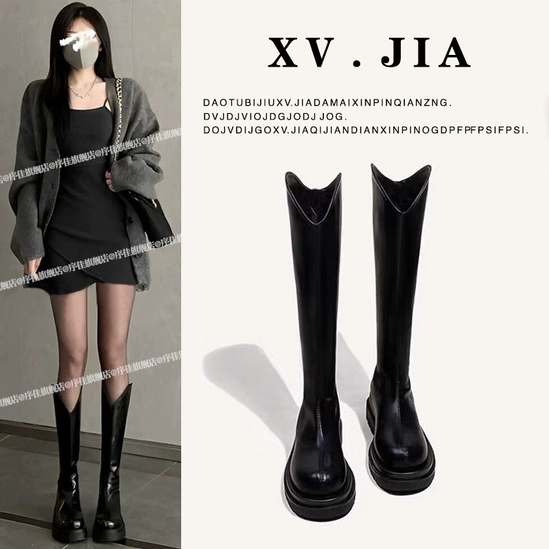 Ботинки с длинными трубками с высокой трубкой для женских толстых сапог 2025 Новый осень и зимний стиль, но толстые колены и толстые мм большие длинные сапоги с большими трубками