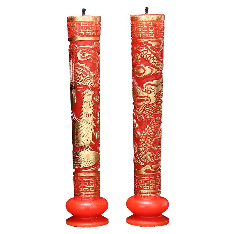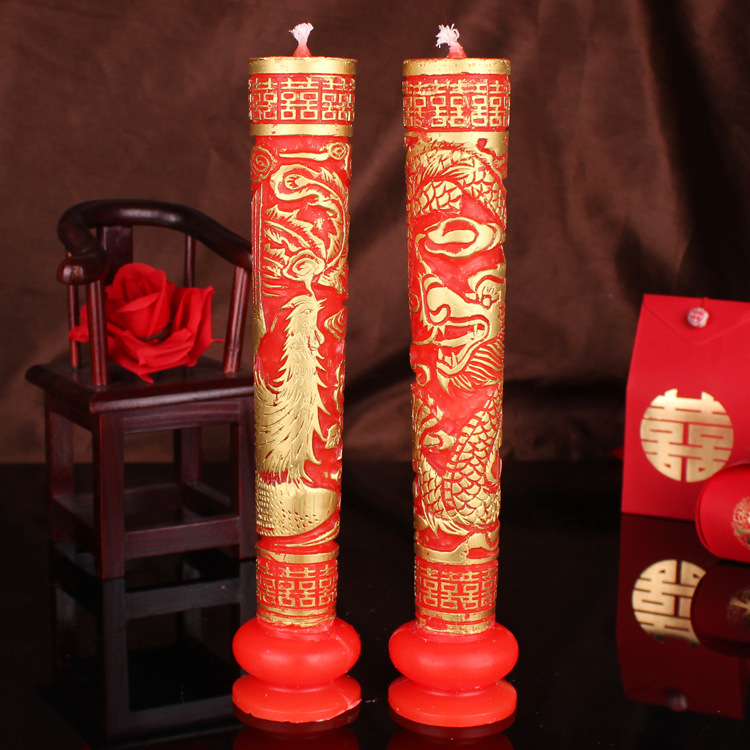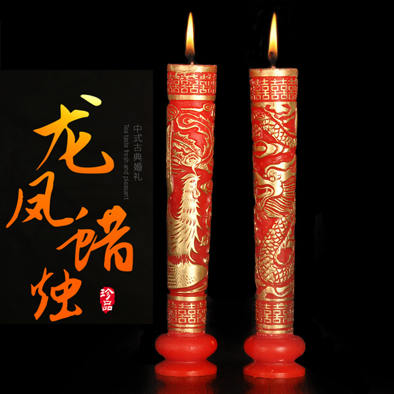 Свадебная поставка китайская в стиле Свадебная церковь Дракон и Феникс Хи персонажи, красные цветочные свечи, пара свадебных подсвечников