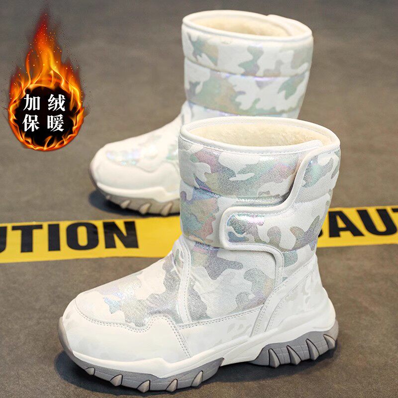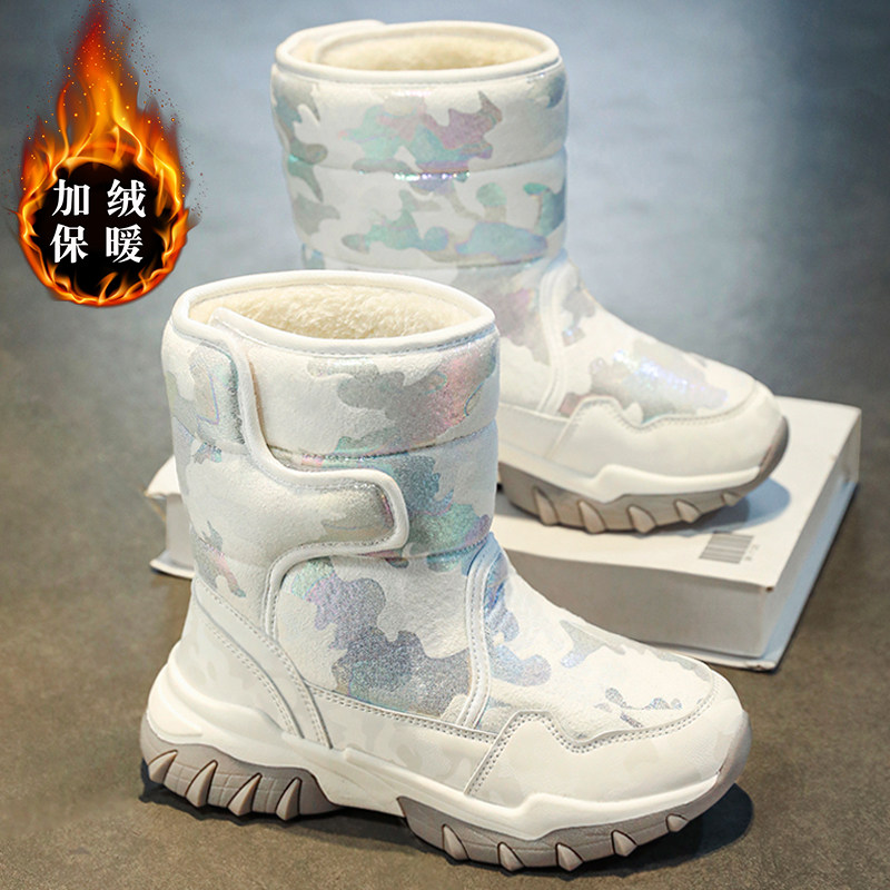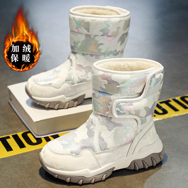 Зимняя детская обувь, белые флисовые высокие сапоги, подходит для подростков
