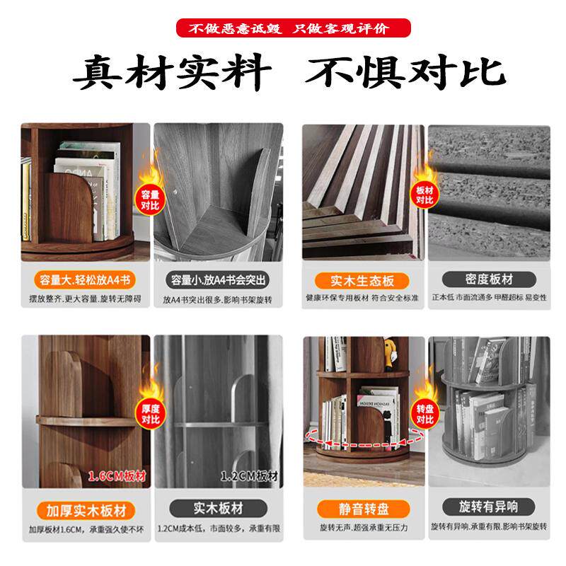 Крутящаяся книжная полка, настольный книжный шкаф, простая система хранения из натурального дерева