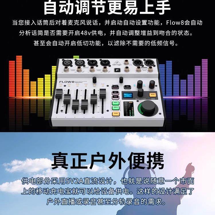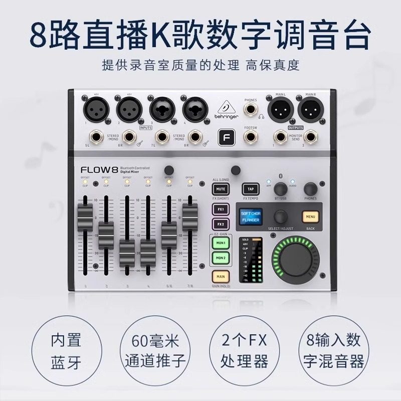 BEHRINGER/百灵达 Flow8 Professional Band Anchor Live Sound Card K Song Digital Mixer