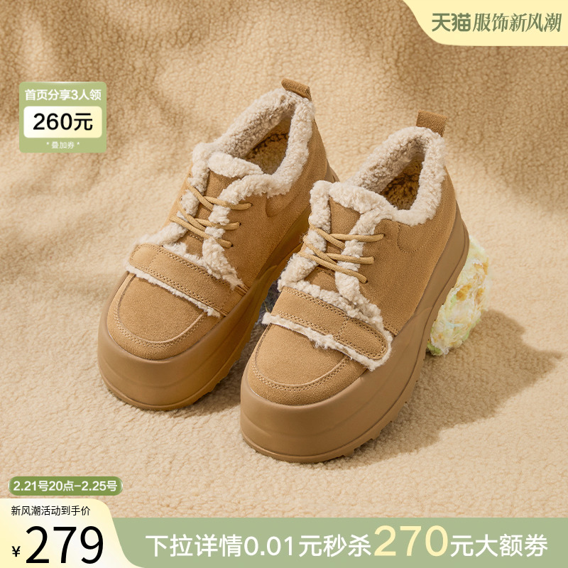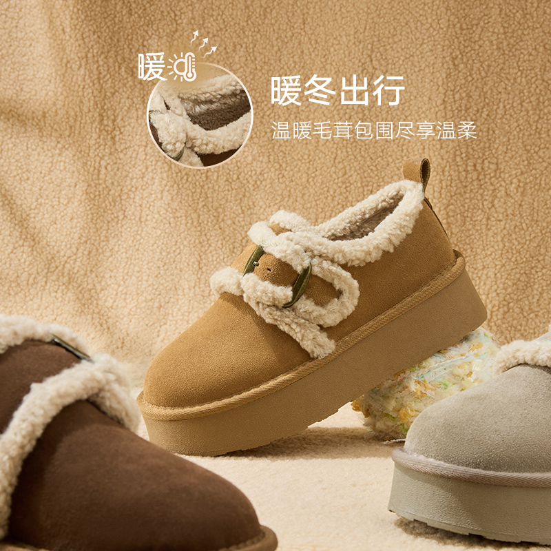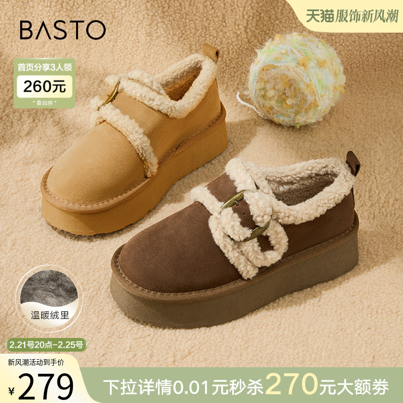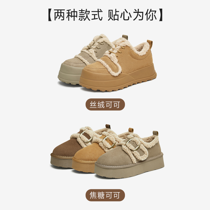 【Карамельное какао】 BASITU Зимние новые толстые снежные ботинки меховые туфли хлопковые муники