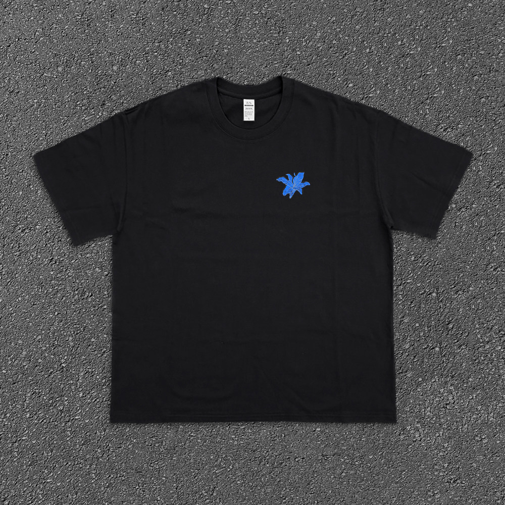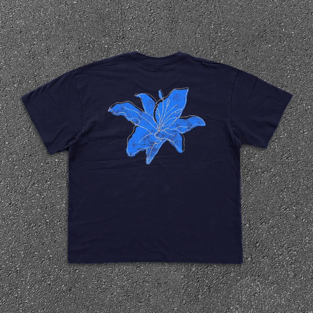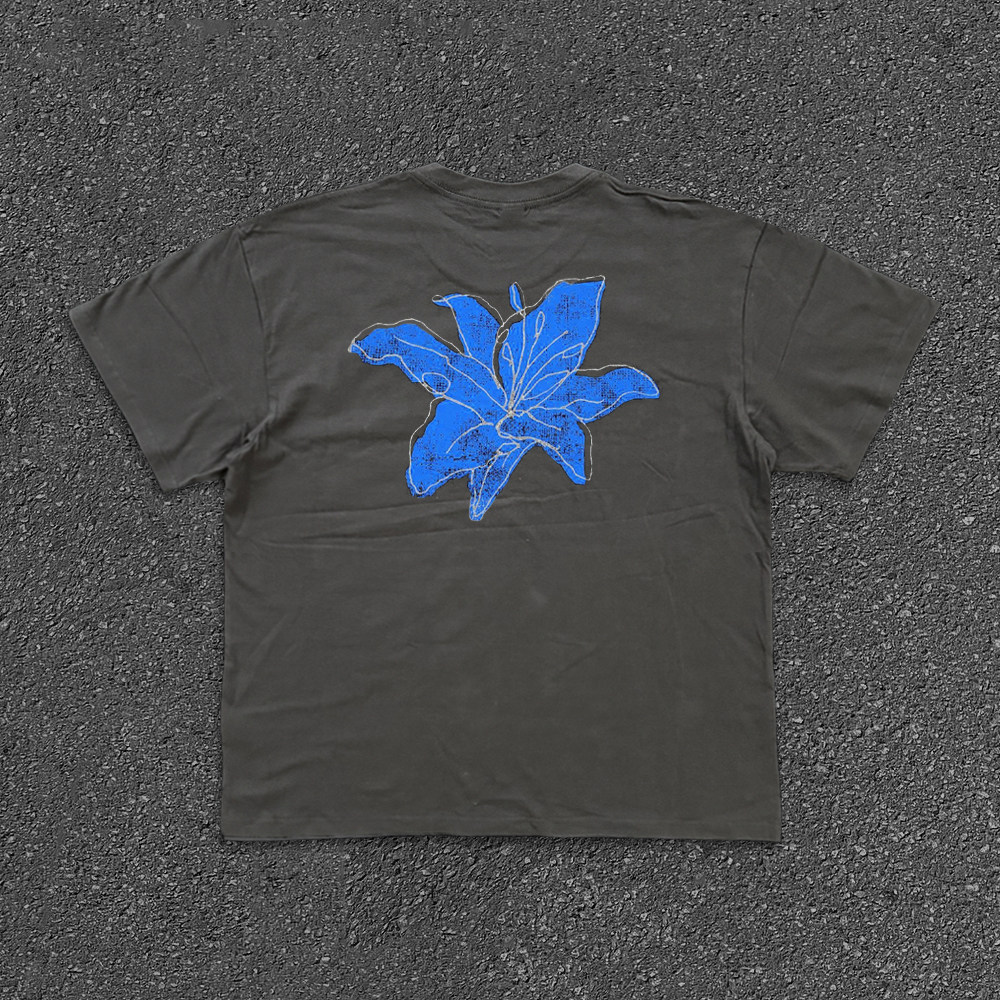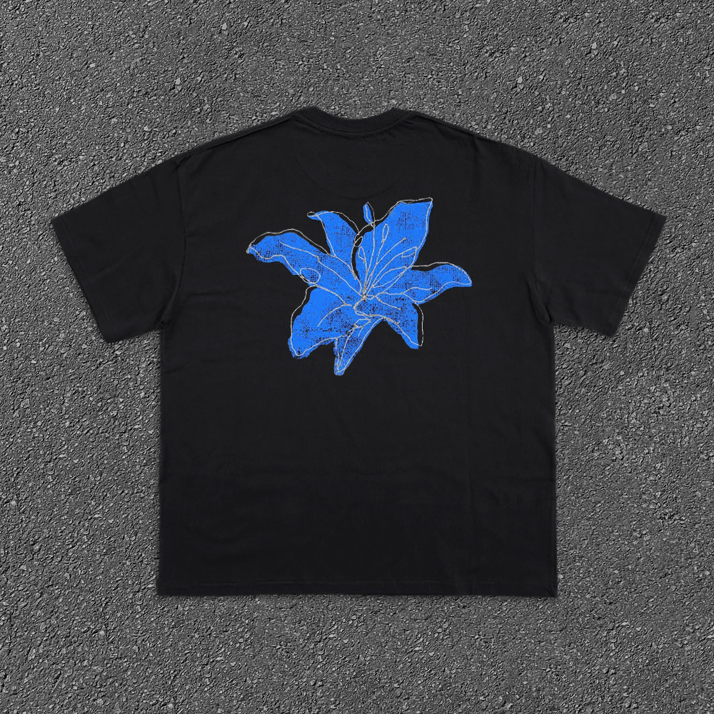 Хлопковая синяя футболка с коротким рукавом, в американском стиле, в цветочек