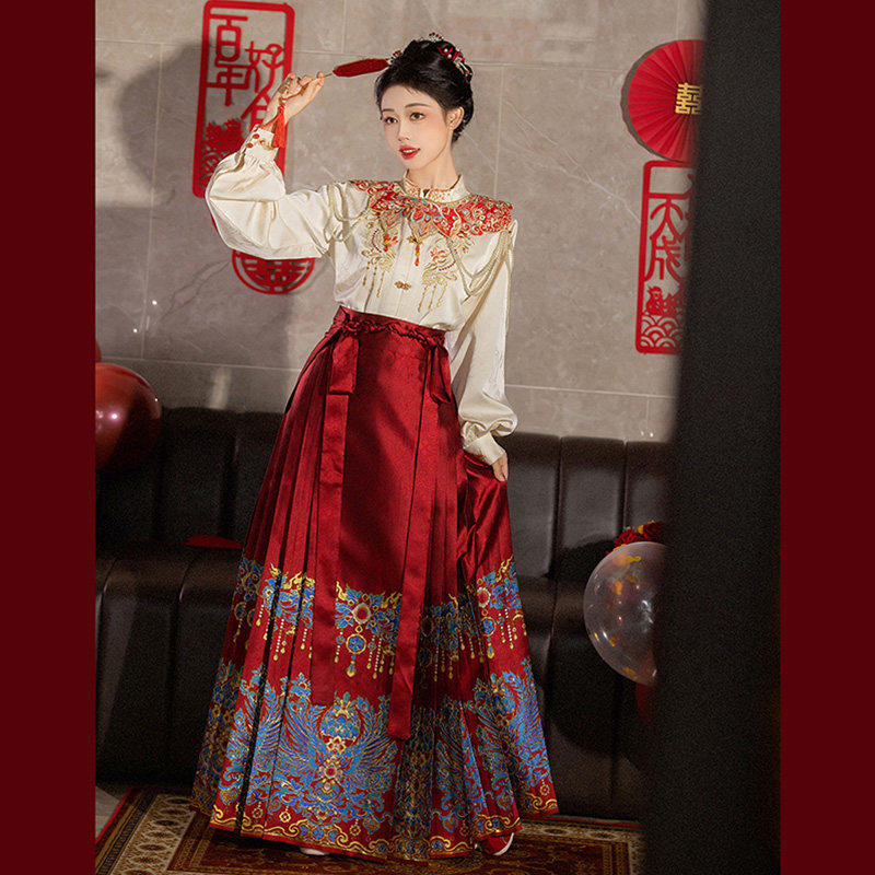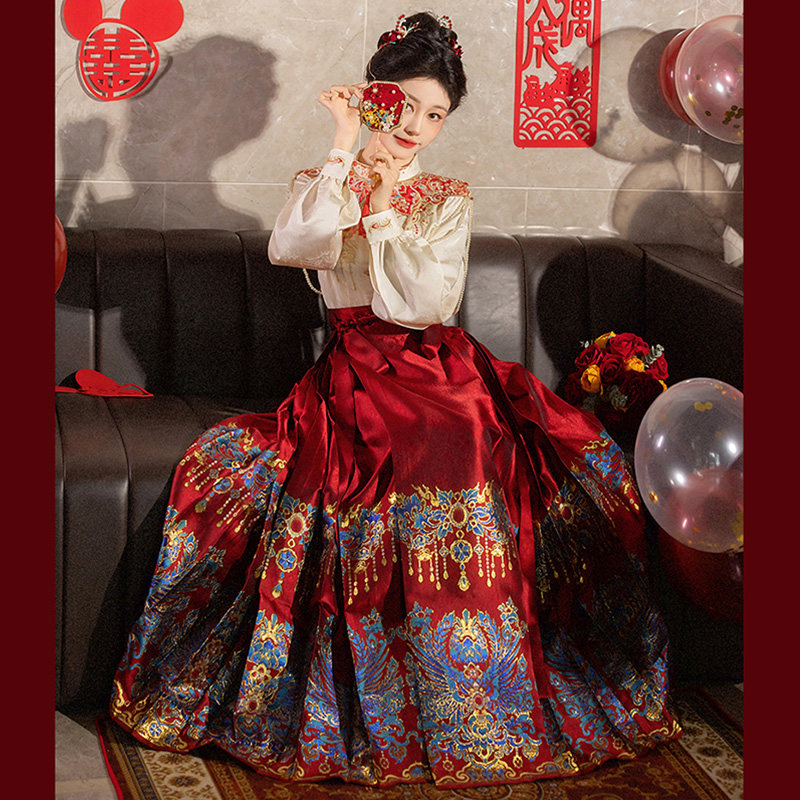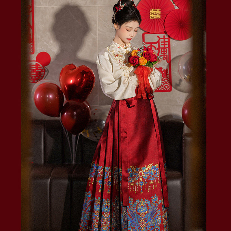 Красное свадебное платье, комплект, ханьфу, вечернее платье, китайский стиль
