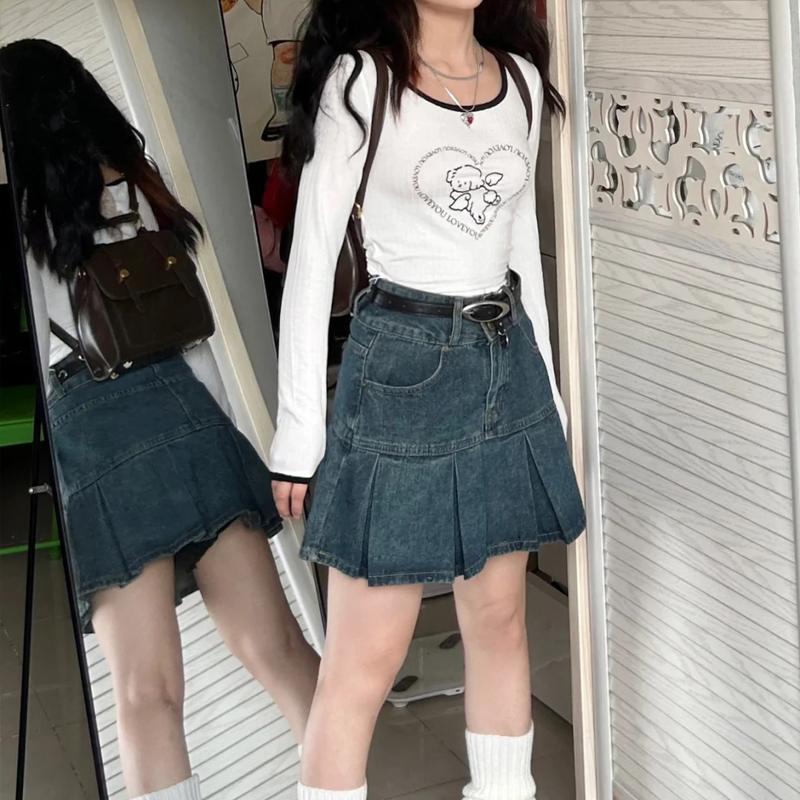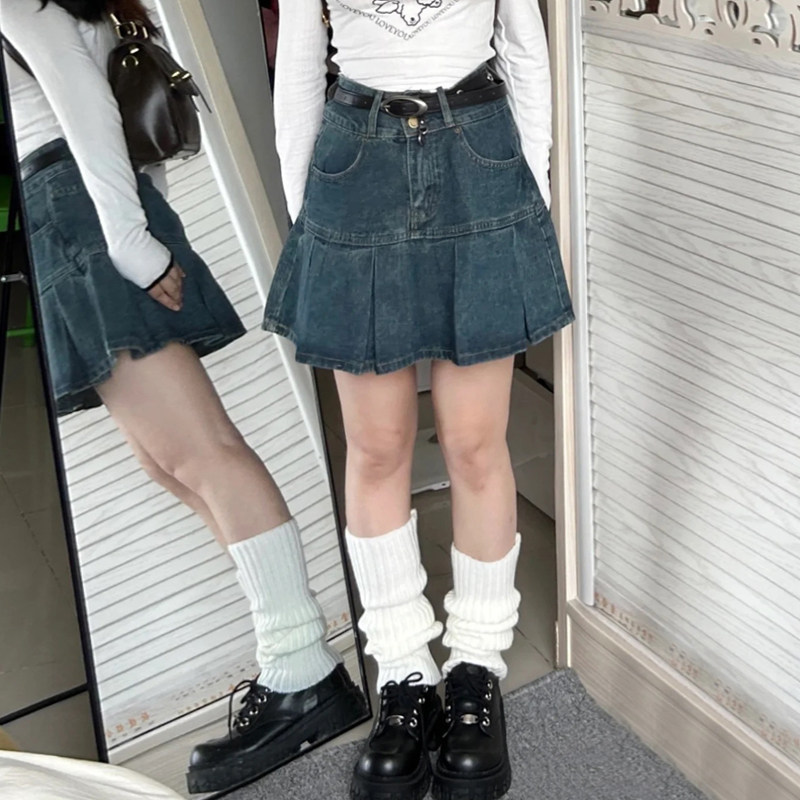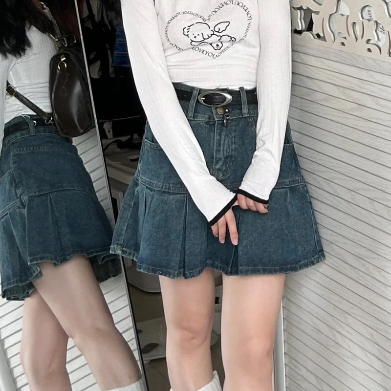 Юбка в складку, летняя джинсовая юбка, высокая талия, большой размер, подходит для полных девушек, по фигуре