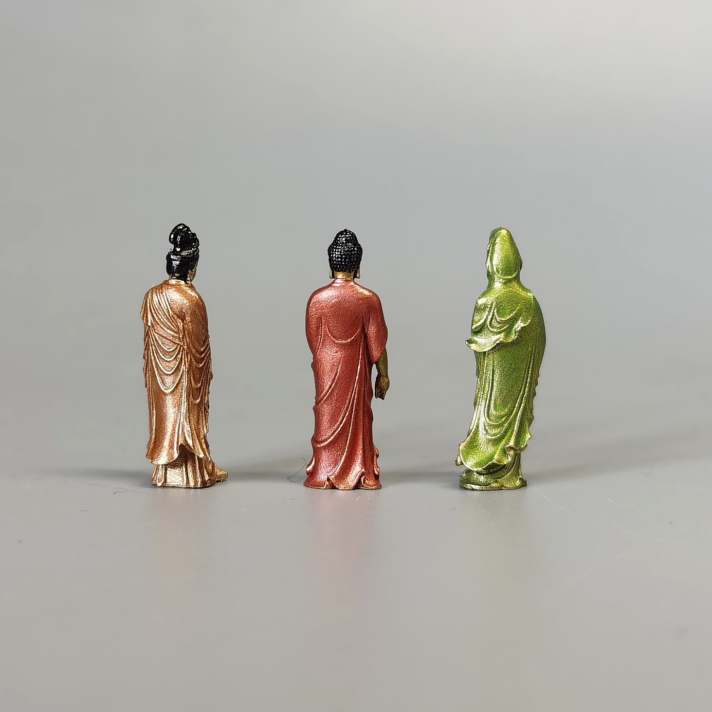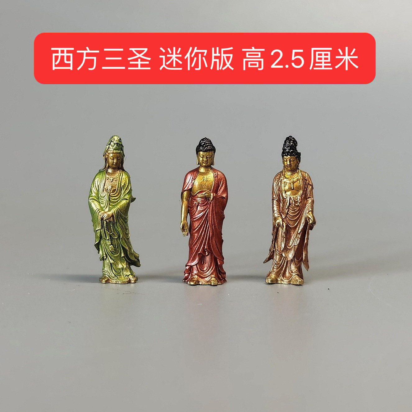 Твердая чистая медь Western Three Saints Мини-версия Чистая бутылка Гуаньинь Маленькие украшения Станция Мини-статуя Будды Портативная бронзовая статуя Будды Будды