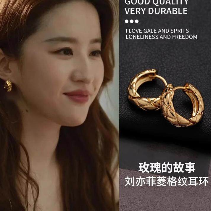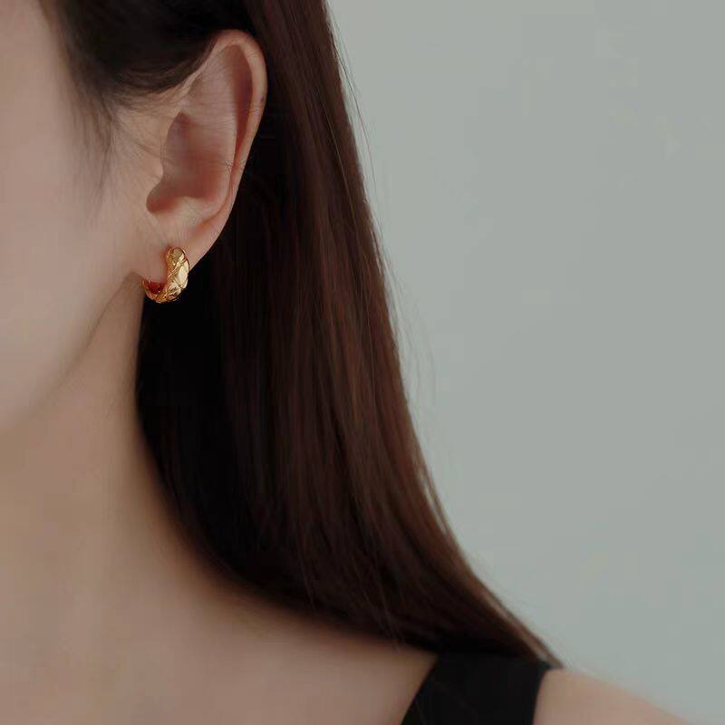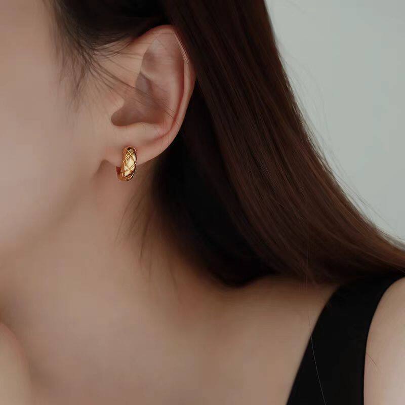 Маленькие изысканные серьги с ромбовидным узором, золотое металлическое кольцо