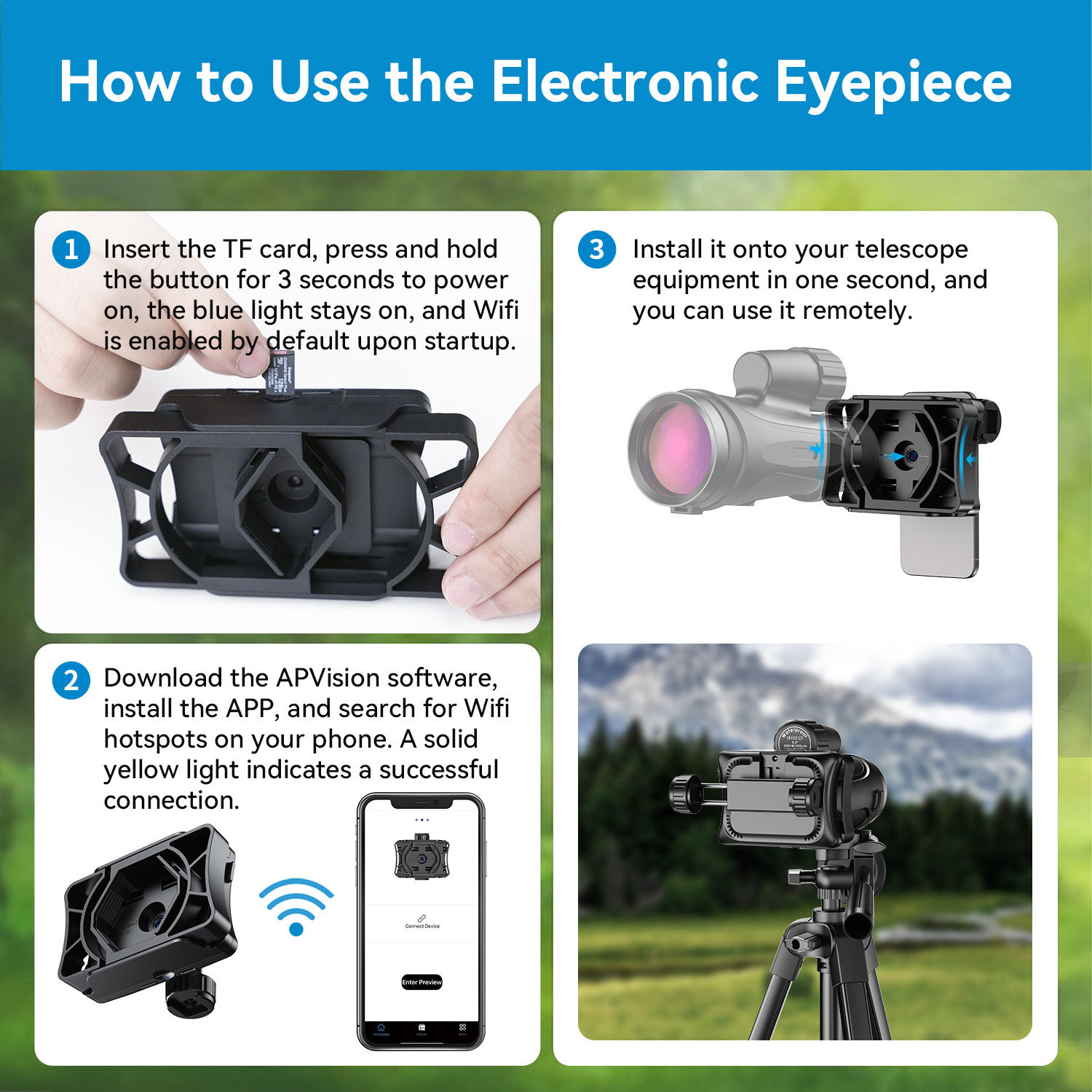 Бинокль APEXEL 200 Вт, астрономический телескоп для наблюдения за птицами, микроскоп, HD Wi-Fi, уличная фотография, подключение электронного окуляра