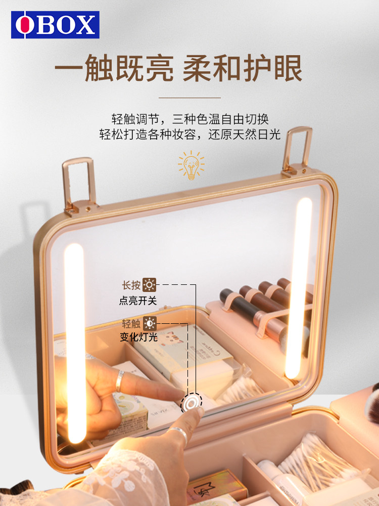 OBOX Портативное профессиональное зеркало с подсветкой, коробка для хранения, 12 дюймов