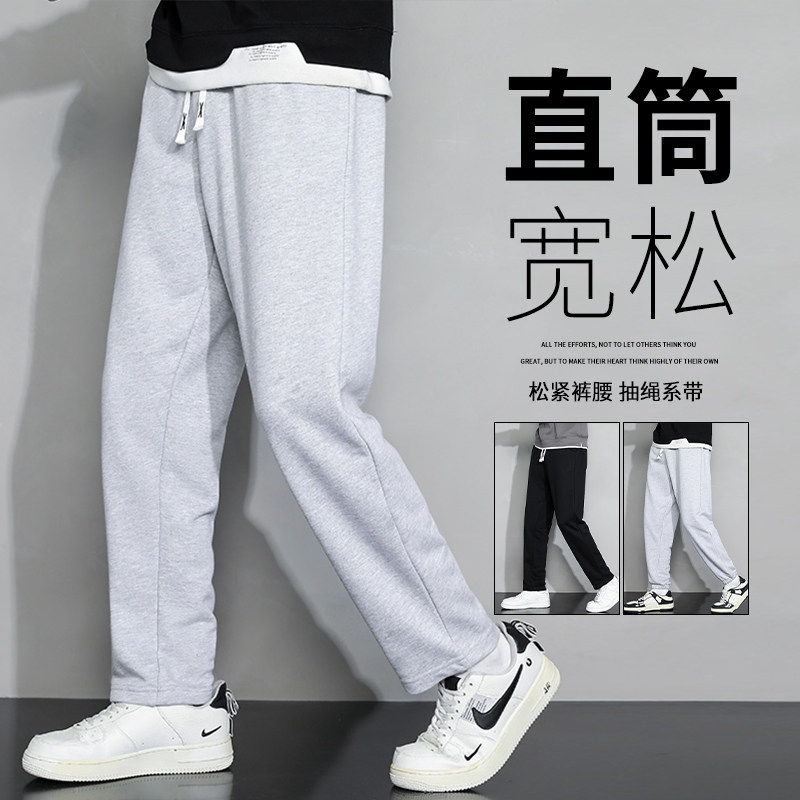 Мужские осенние демисезонные спортивные штаны для отдыха, на шнурках, свободный прямой крой