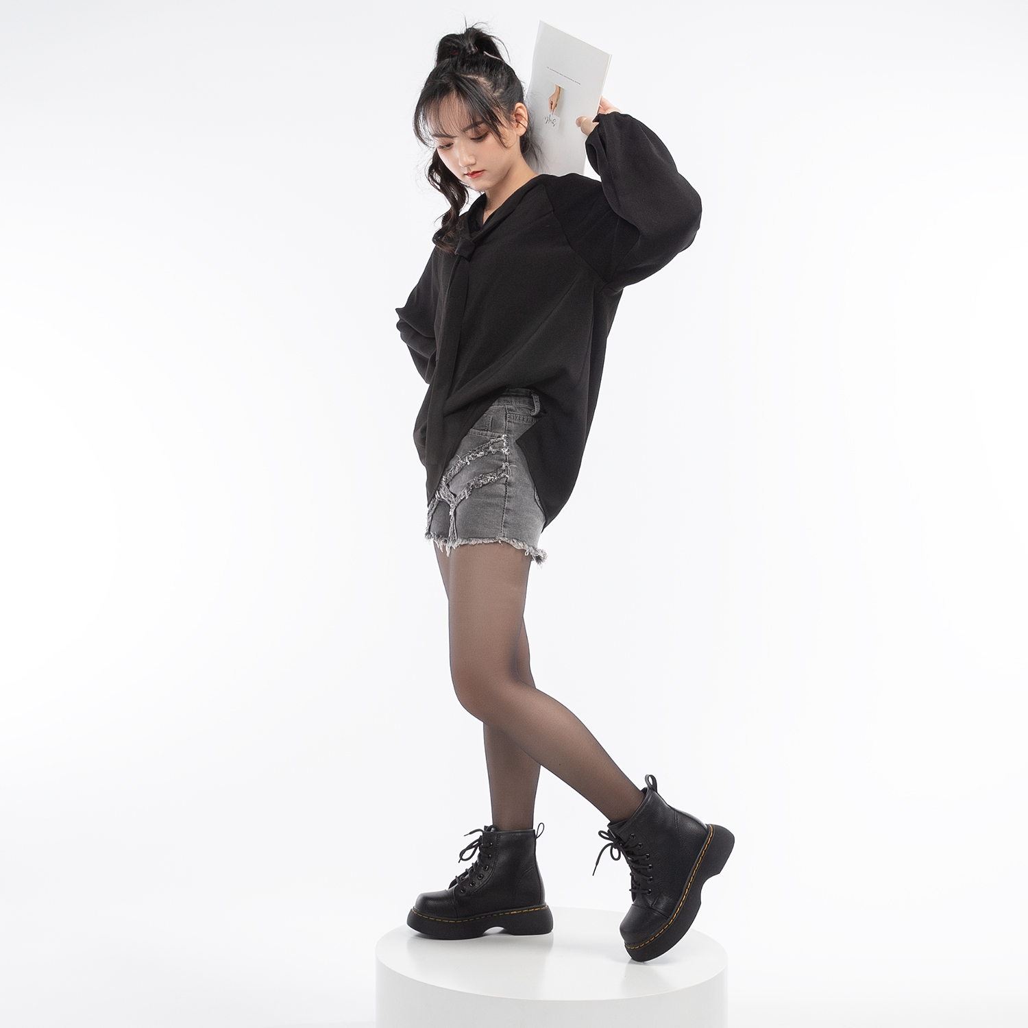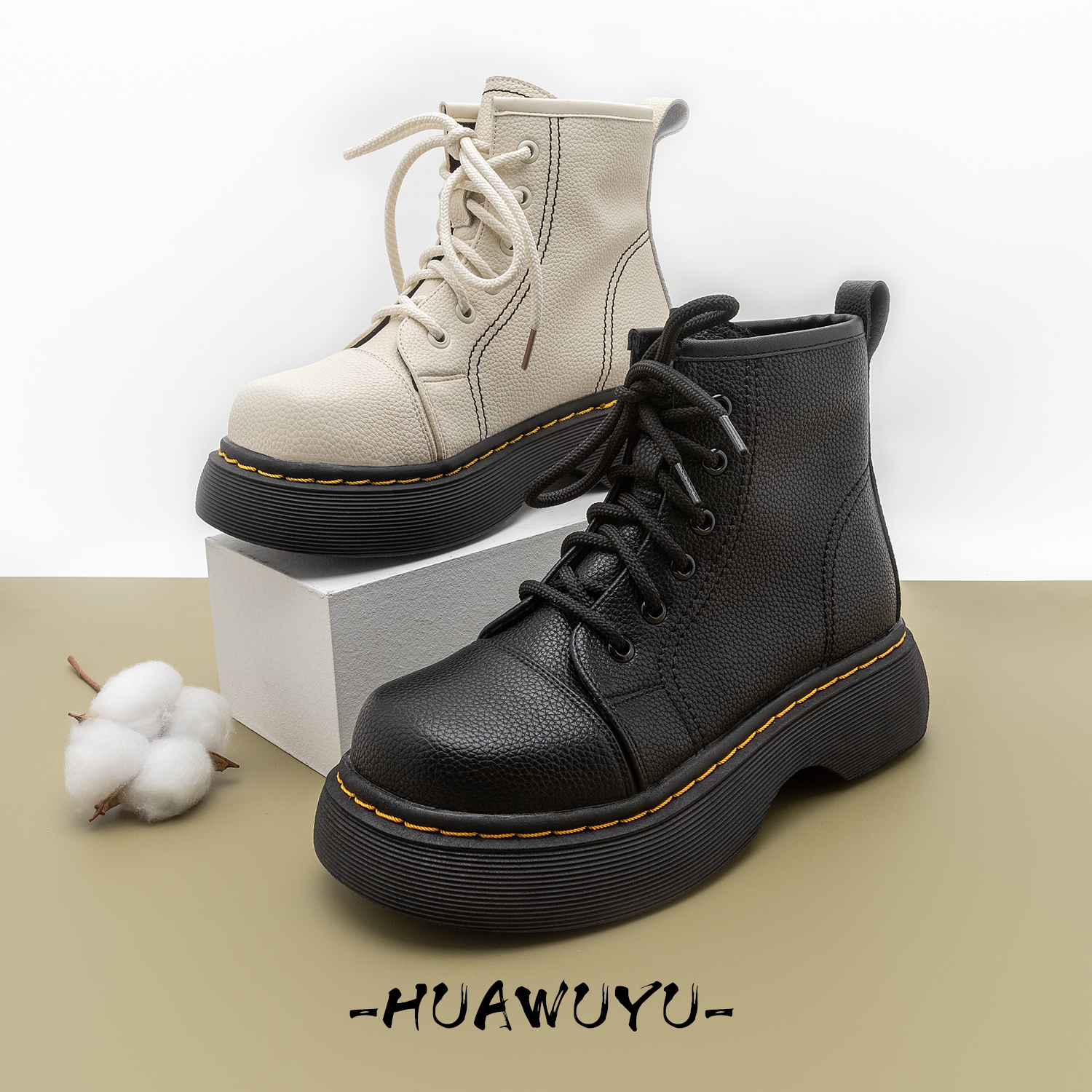 化雾语 Martens, демисезонные кожаные флисовые ботинки на платформе