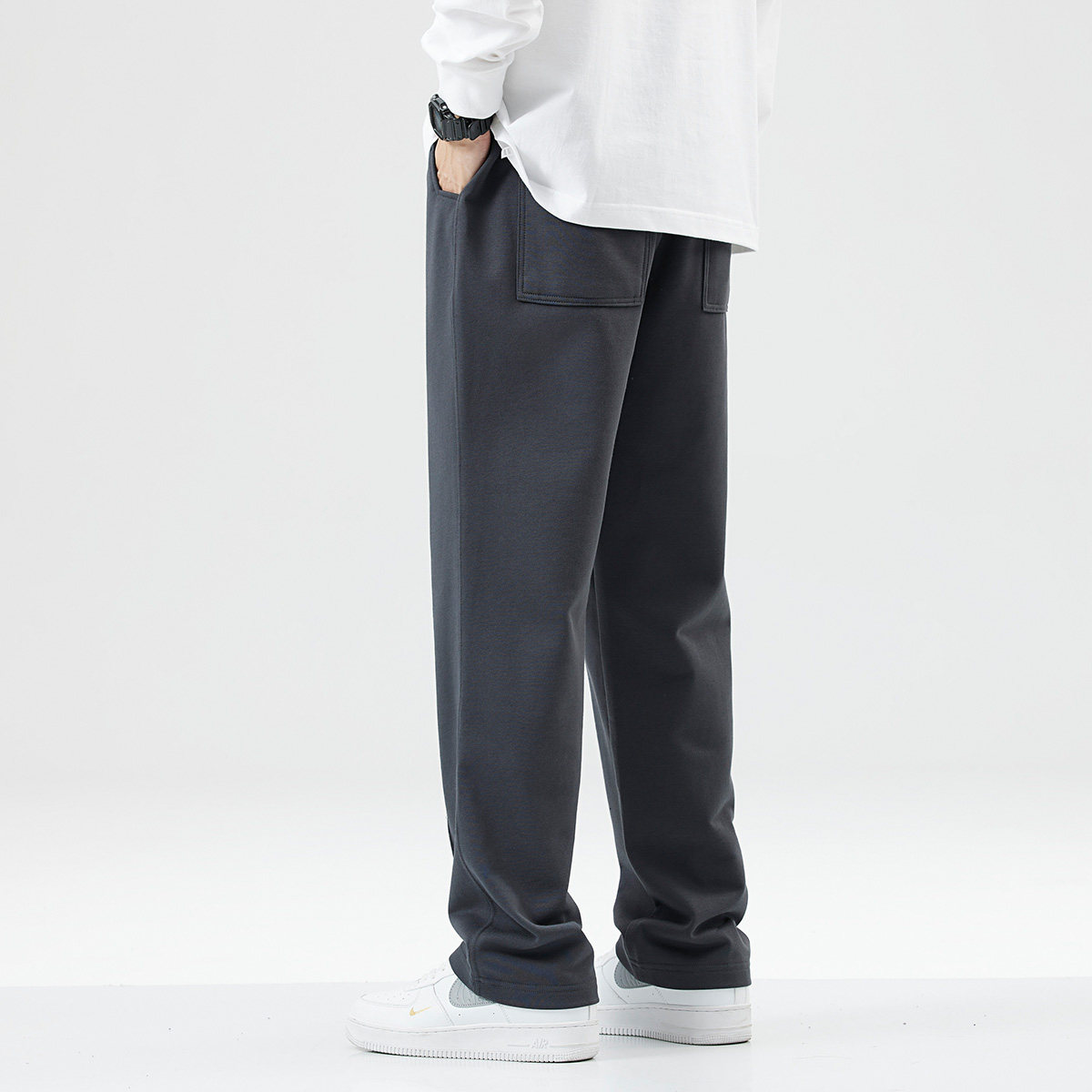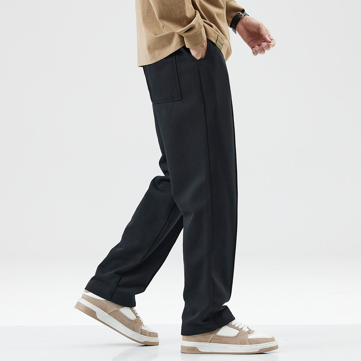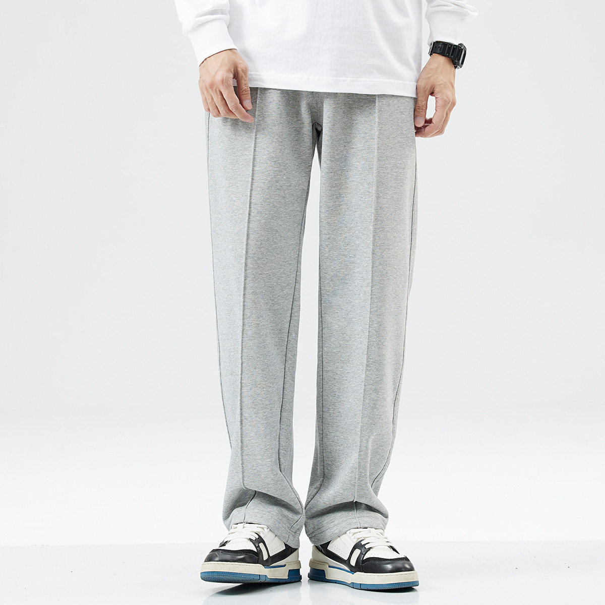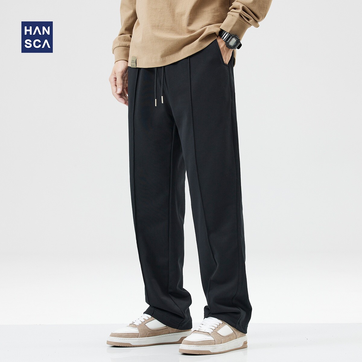 Демисезонные утепленные спортивные черные штаны, оверсайз, на шнурках, свободный прямой крой