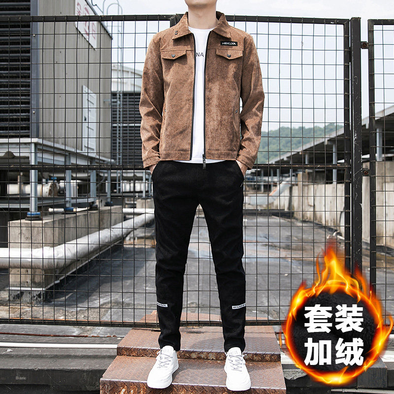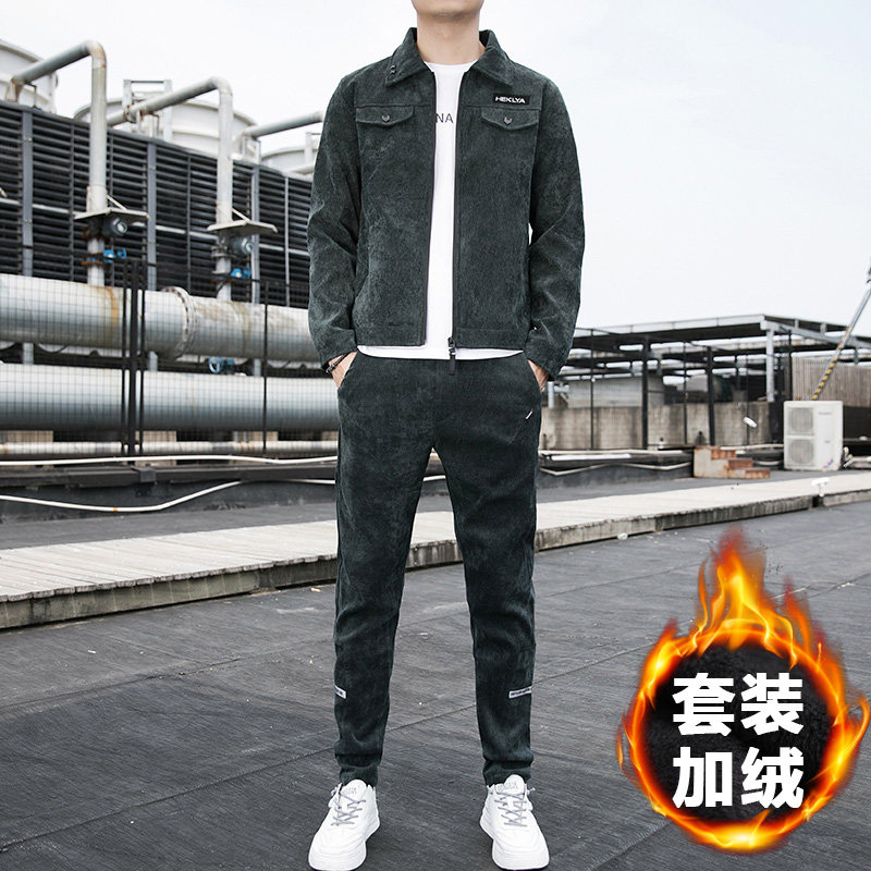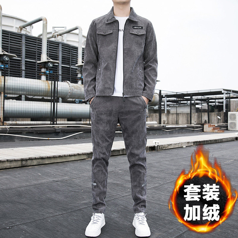 Спортивный комплект, вельветовая мужская утепленная куртка для отдыха