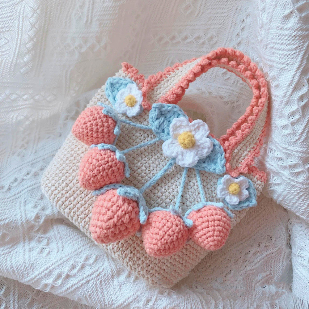 Клубника ручной работы, барсетка, набор материалов, плетеный крючок для вязания, сумка на одно плечо для друга, DIY