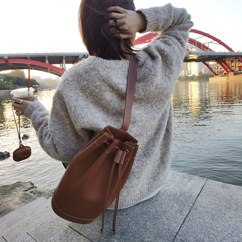 Небольшая дизайнерская кожаная сумка на одно плечо, из натуральной кожи, на шнурках