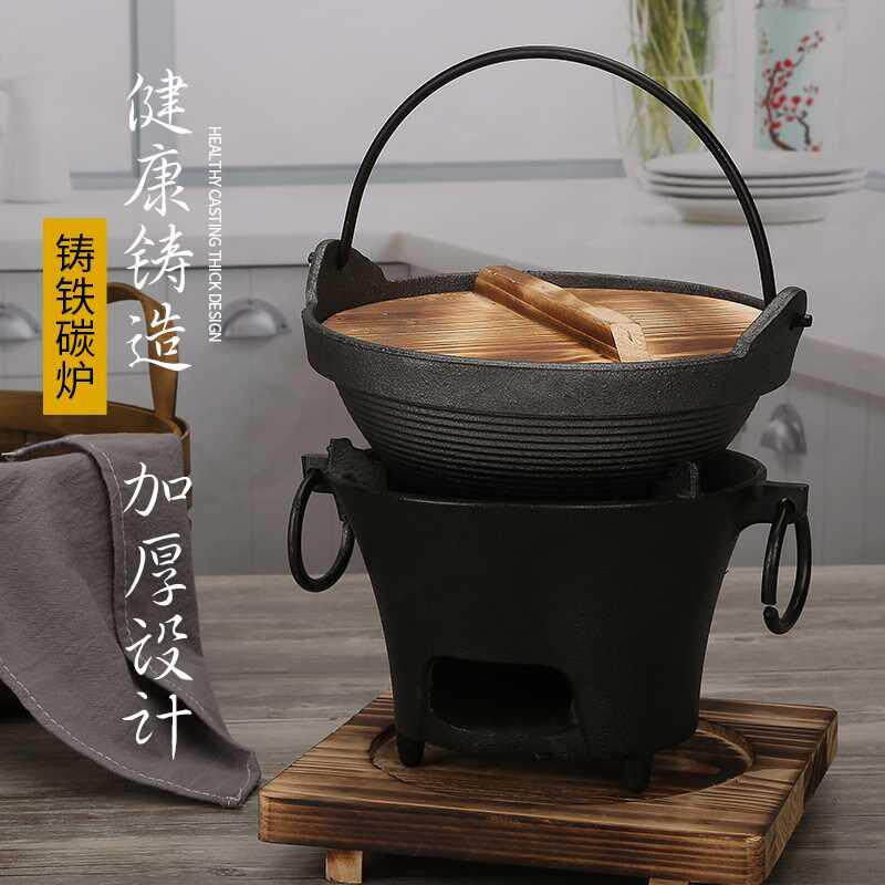 Угольная печь чугуна из углеродной печи Старая ветряная печь Небольшой горшок домик древесный уголь угольный уголь котел печь Железное деревянное стойка Разнообразное железное горшок с железом