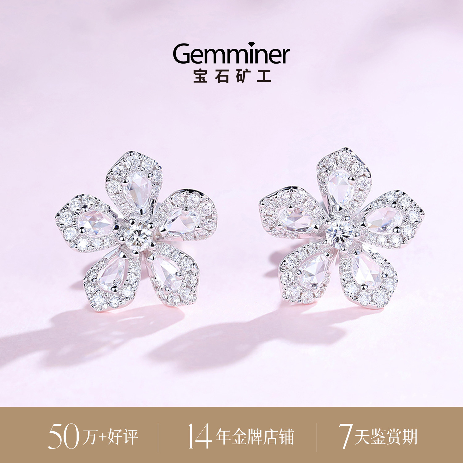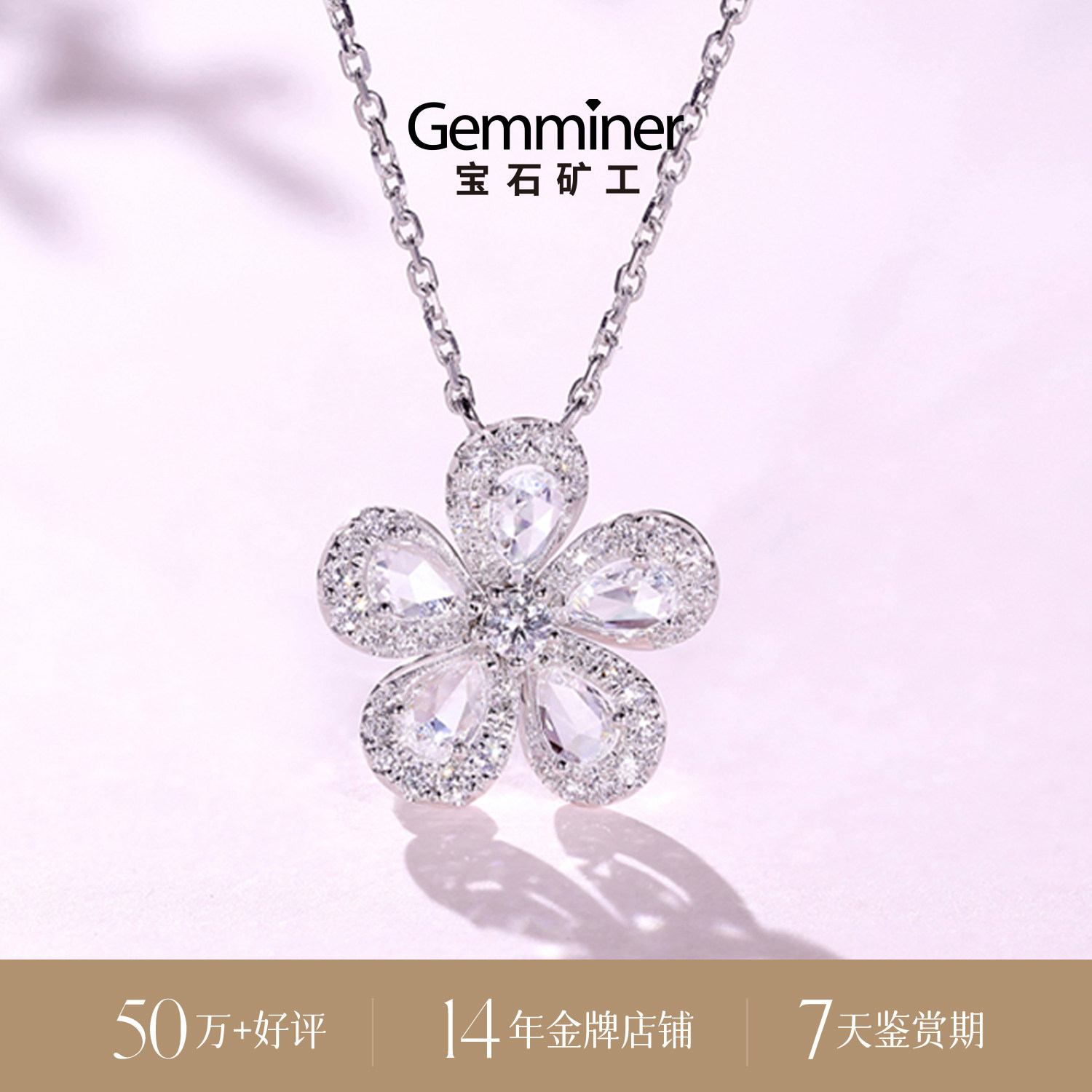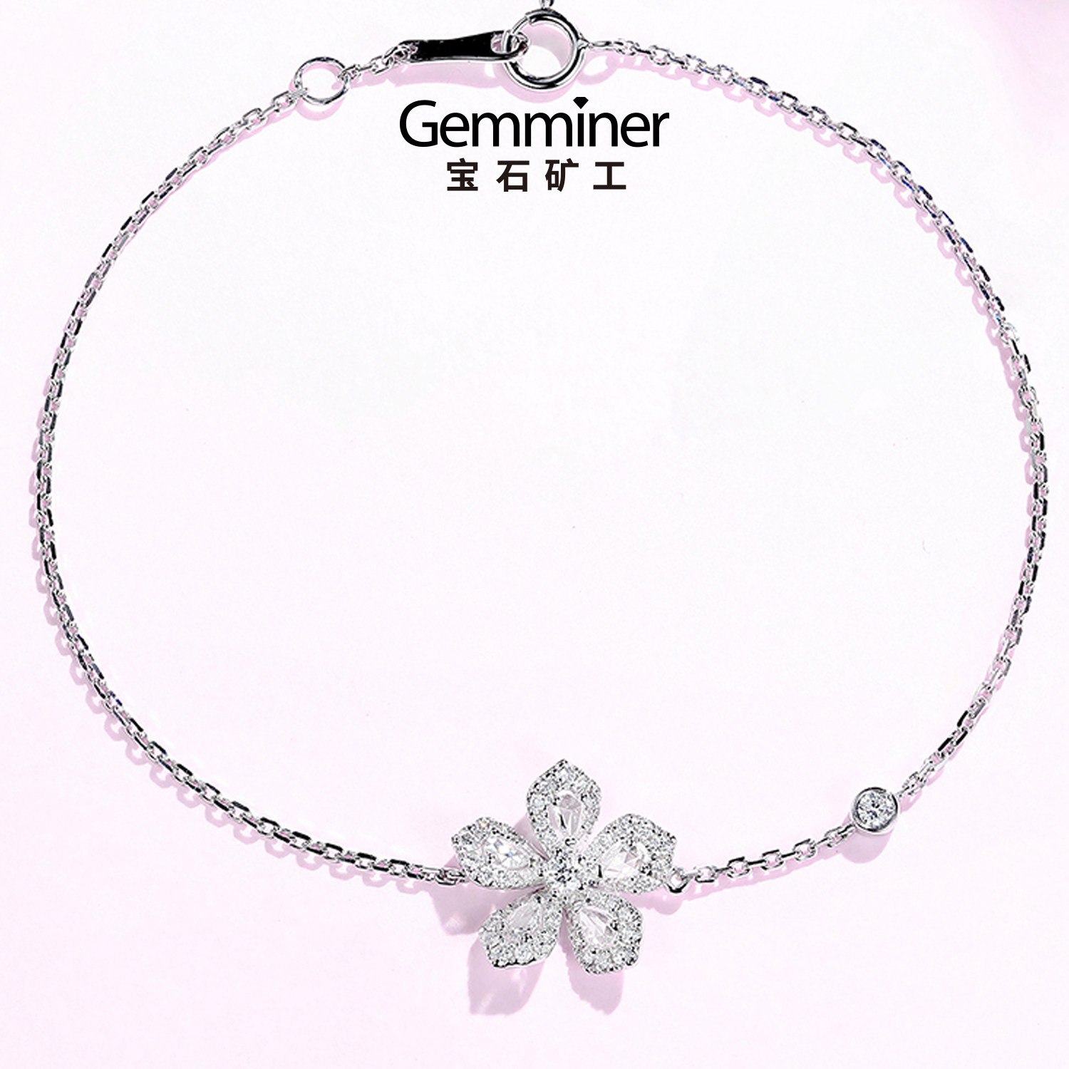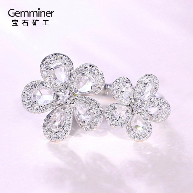 宝石矿工 Платиновые серьги, кольцо, ожерелье, цепочка, браслет, белое золото 18 карат, в цветочек