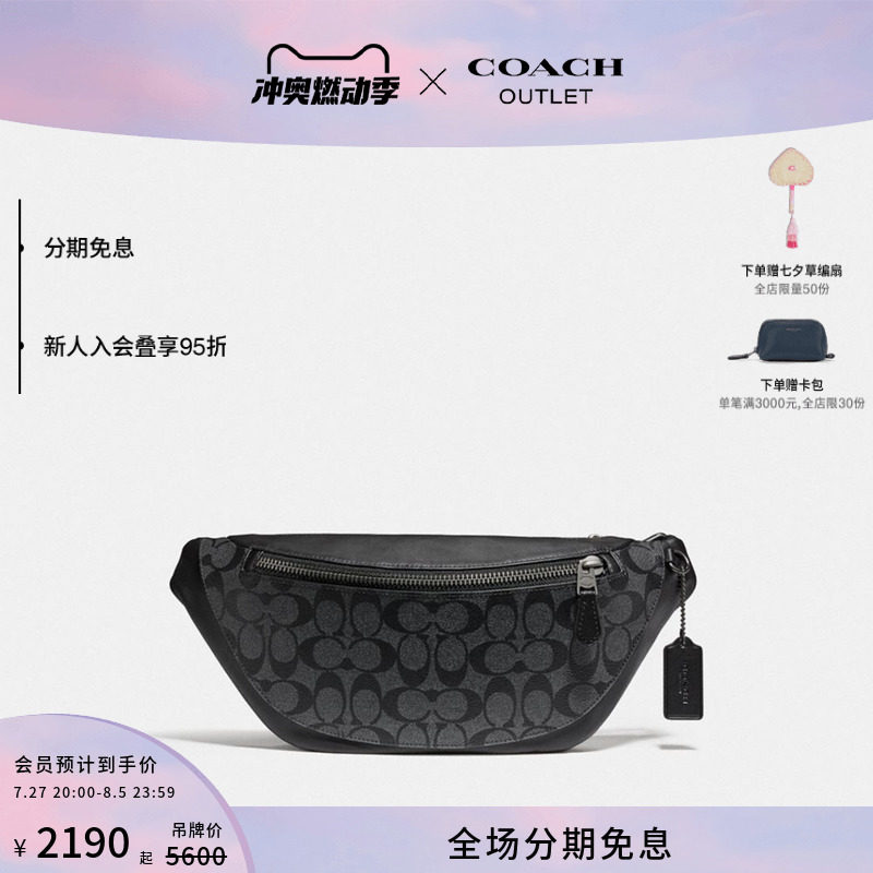 [Китайский подарок на День Святого Валентина] Мужская сумка COACH/Coach Outlet для пресбиопии WARREN, средняя поясная сумка на молнии, черная