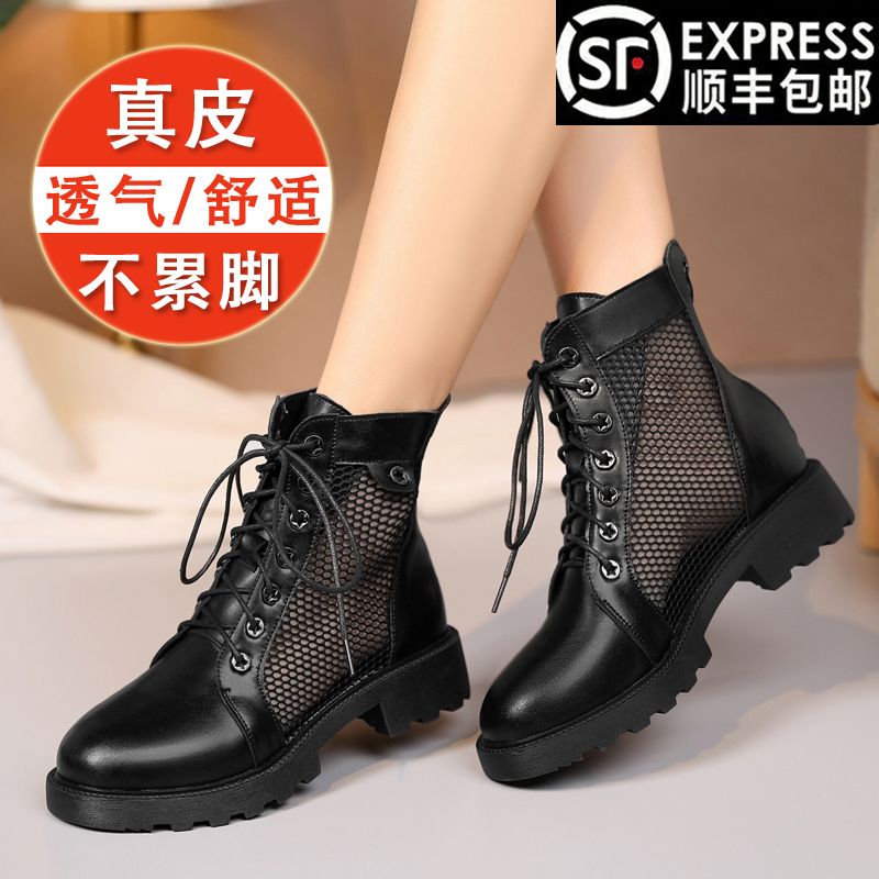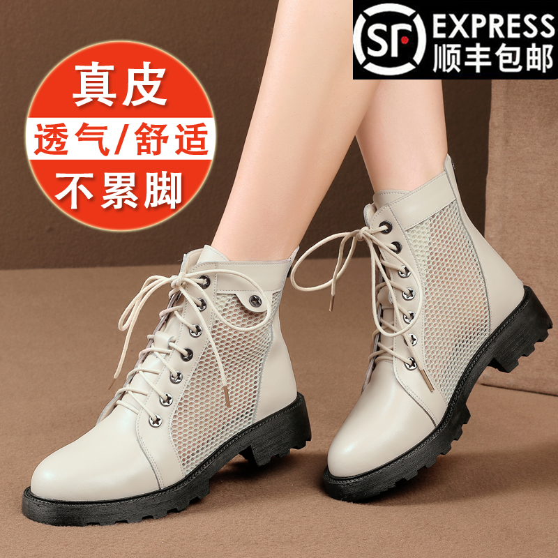 Martens, сетчатые летние тонкие дышащие короткие сапоги, коллекция 2022, из натуральной кожи