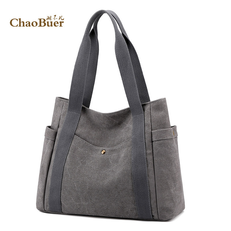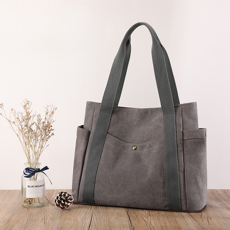 Вместительный и большой шоппер, сумка на одно плечо для отдыха, ткань, в корейском стиле, простой и элегантный дизайн