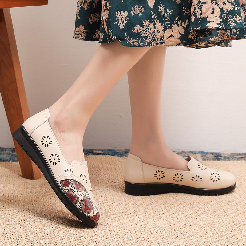 Летние сандалии для матери, комфортные туфли для кожаной обуви, из натуральной кожи, для среднего возраста, мягкая подошва