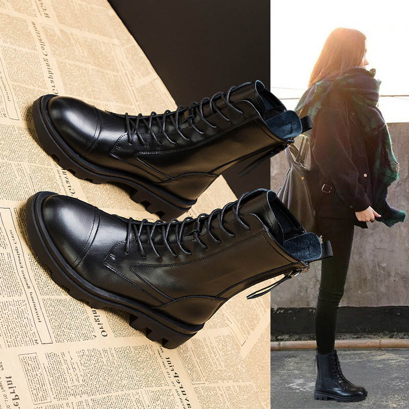 Martens, ботинки, высокие универсальные короткие сапоги в английском стиле на платформе, туфли, из натуральной кожи, осенние