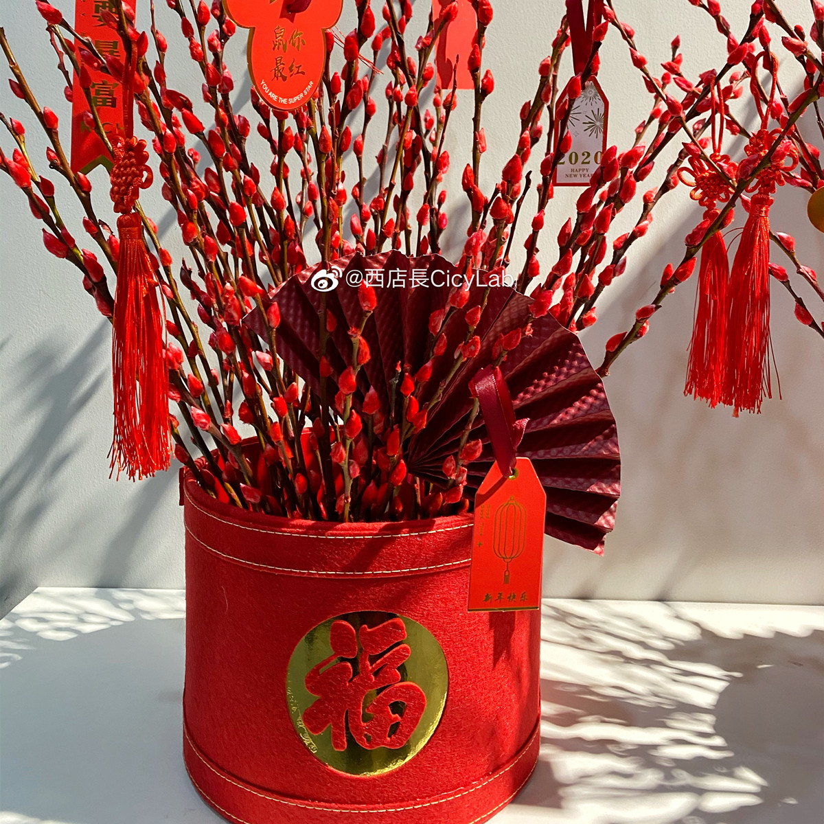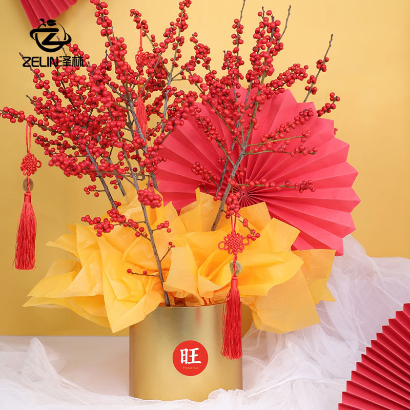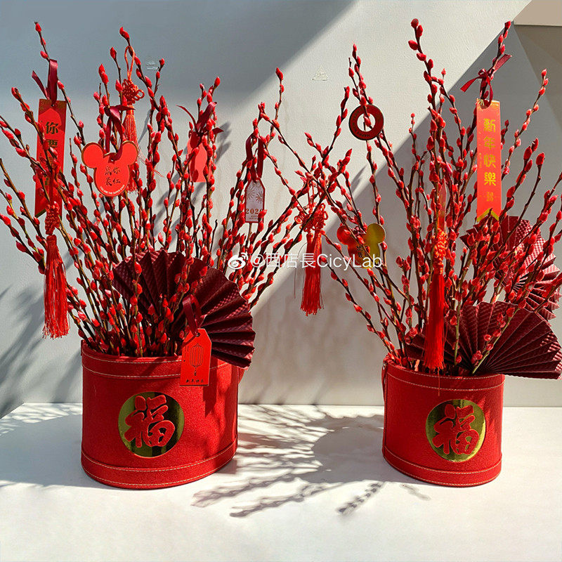 Новогодняя цветочная пуля Новый год красная благословение коробка коробка серебряная ива