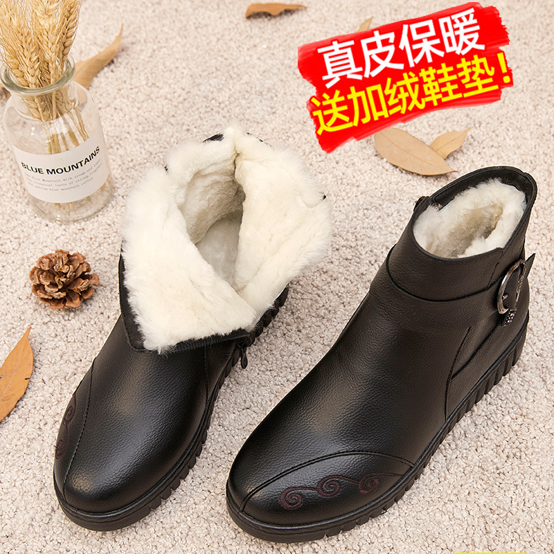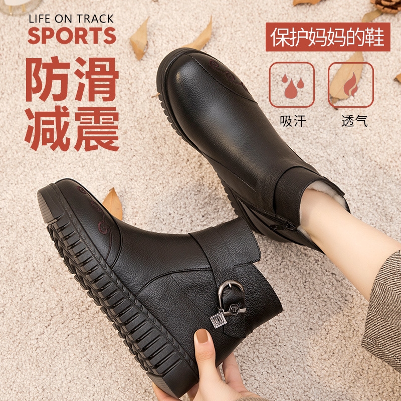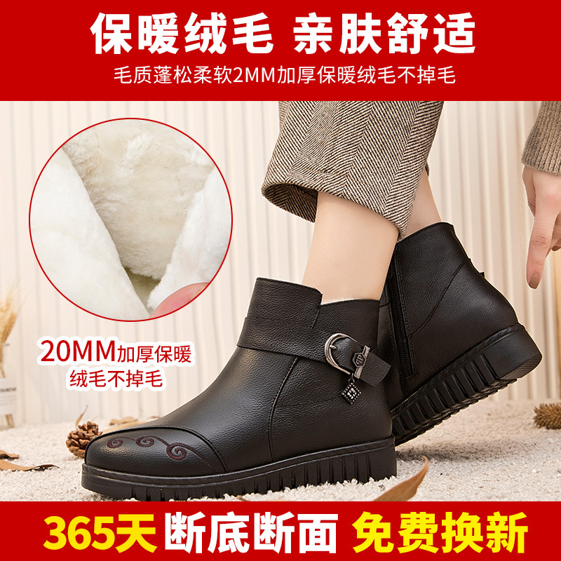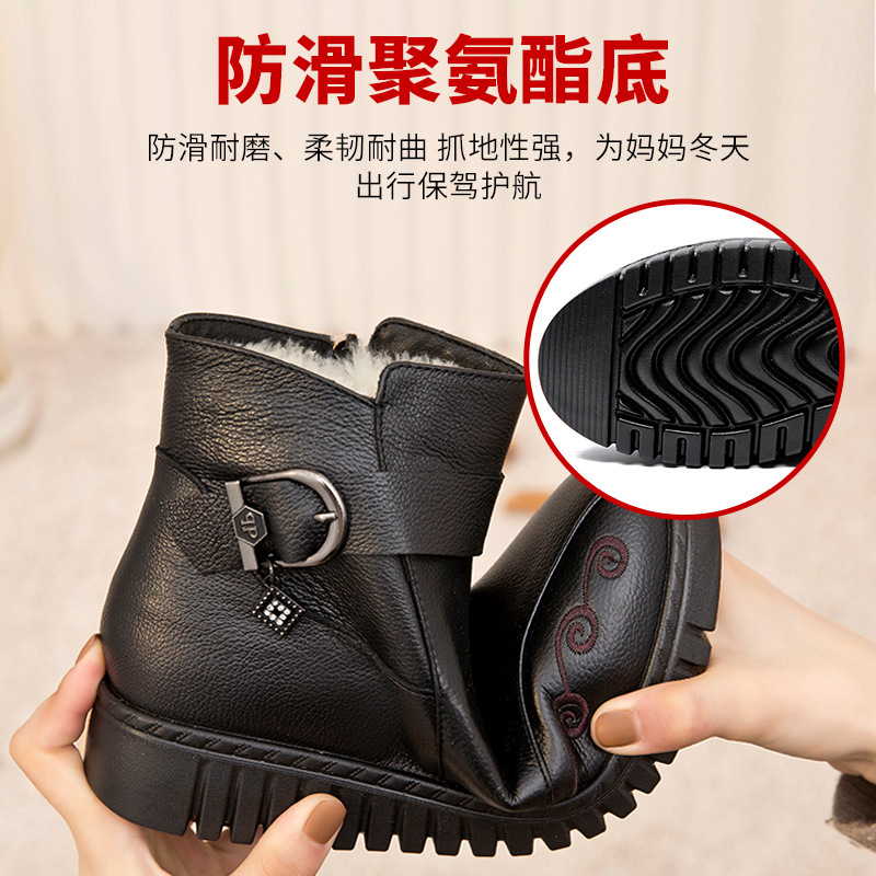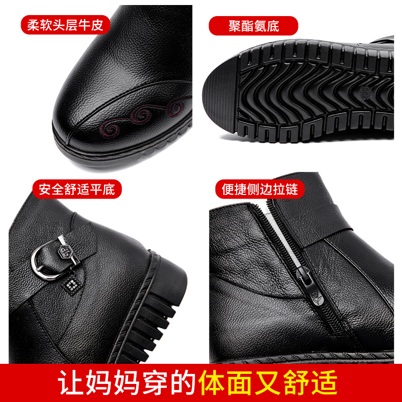 Зимние туфли для матери, удерживающая тепло обувь, флисовые нескользящие комфортные короткие сапоги для кожаной обуви, из натуральной кожи, для среднего возраста
