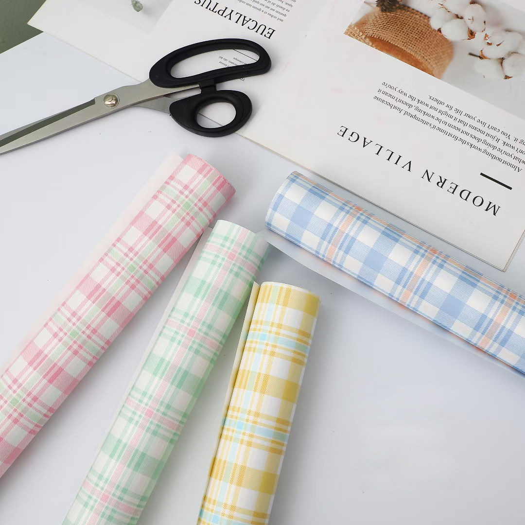 双色格纹花束包装纸网红格子欧雅纸花店防水鲜花包花纸花艺礼品纸