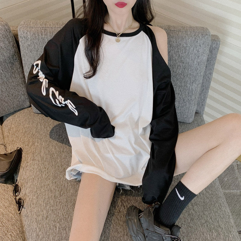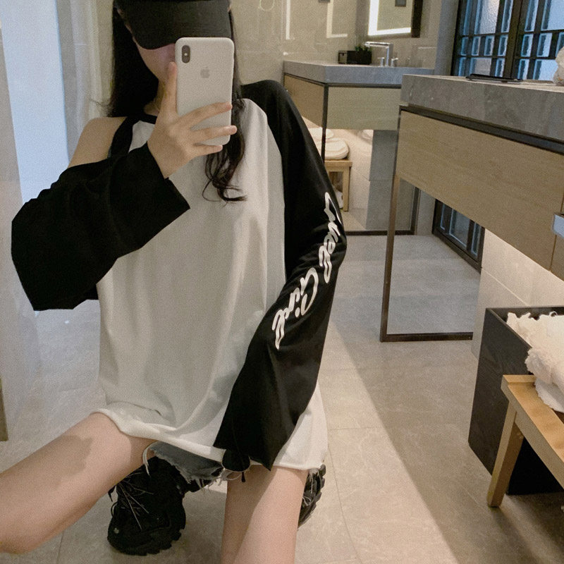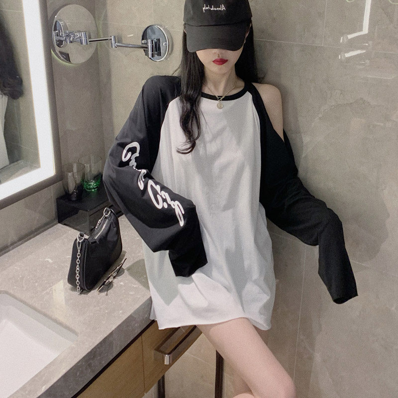 Модная футболка, платье-футболка, осенняя юбка, длинный лонгслив, коллекция 2021, популярно в интернете, средней длины