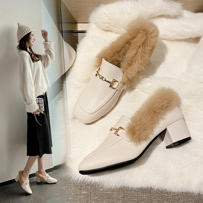 Обувь, демисезонные флисовые туфли для кожаной обуви на высоком каблуке, коллекция 2022