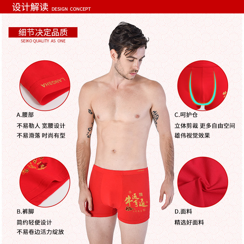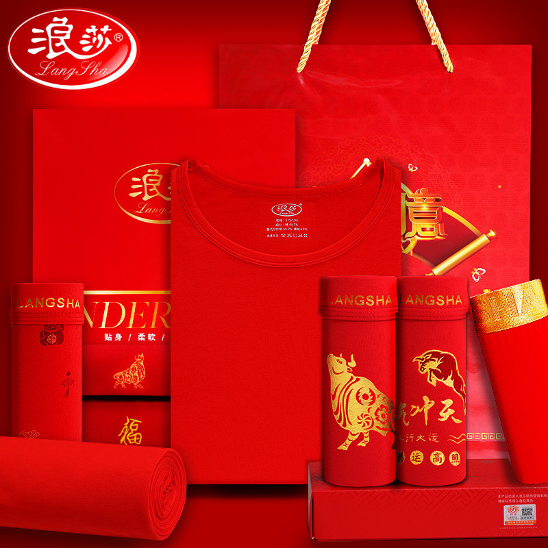 浪莎 Красный оберег на день рождения, нижнее белье, штаны, хлопковое термобелье, год кролика, полный комплект, подарок на день рождения