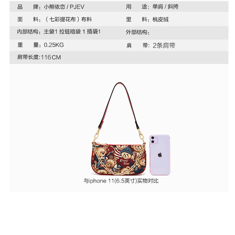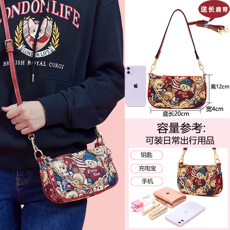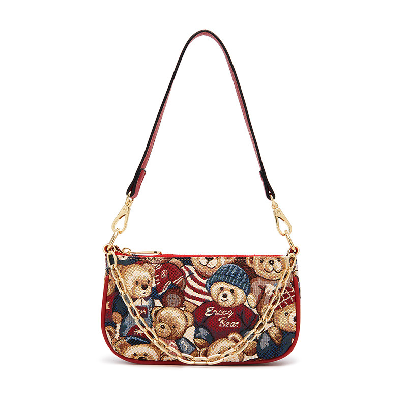 Цепь, сумка подмышку, брендовая универсальная сумка через плечо для отдыха, с медвежатами, коллекция 2023, в корейском стиле