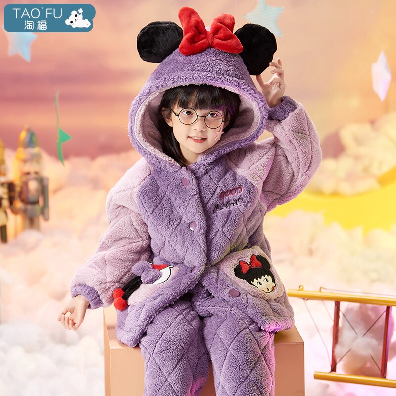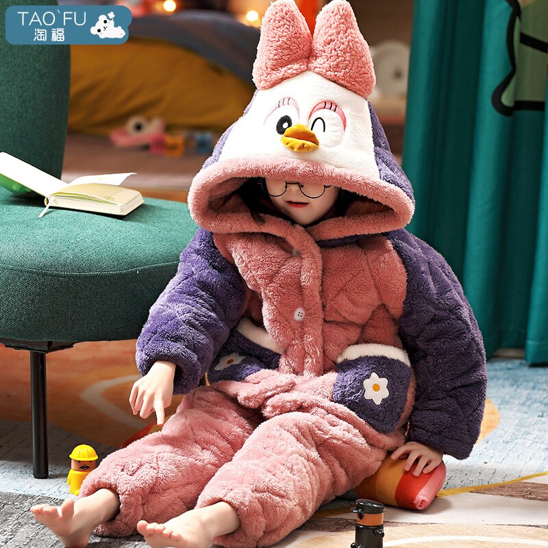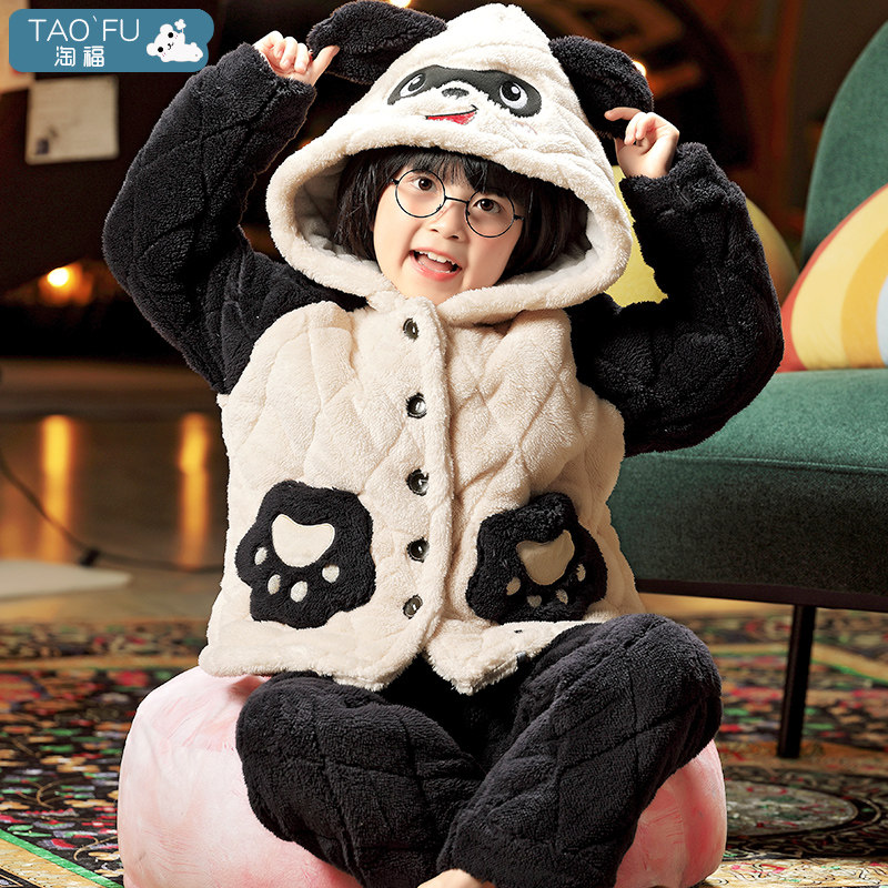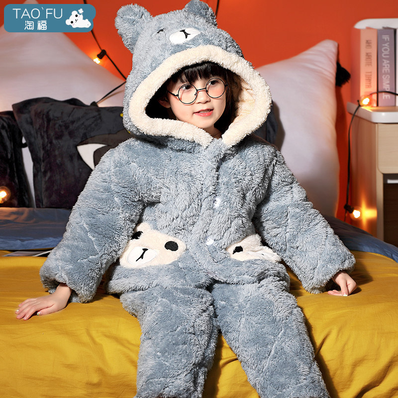 Детская демисезонная утепленная коралловая пижама, бархатный стеганый фланелевый комплект