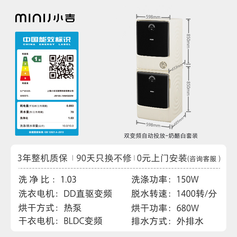 Xiaoshi 10+10 кг стиральная машина для барабанной машины тепловой насос сушильный машины бактерий раздача уборки набор домохозяйств автомат AC1000
