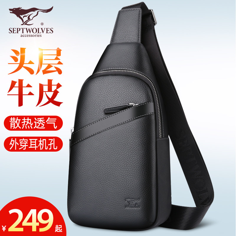 Septwolves, мужская нагрудная сумка, сумка на одно плечо, кожаный рюкзак, из натуральной кожи, воловья кожа