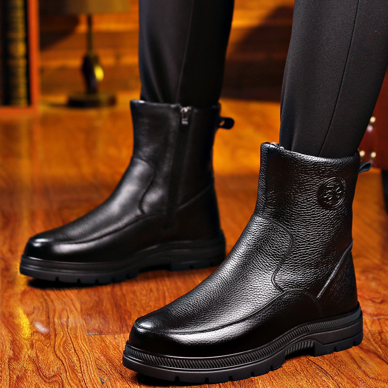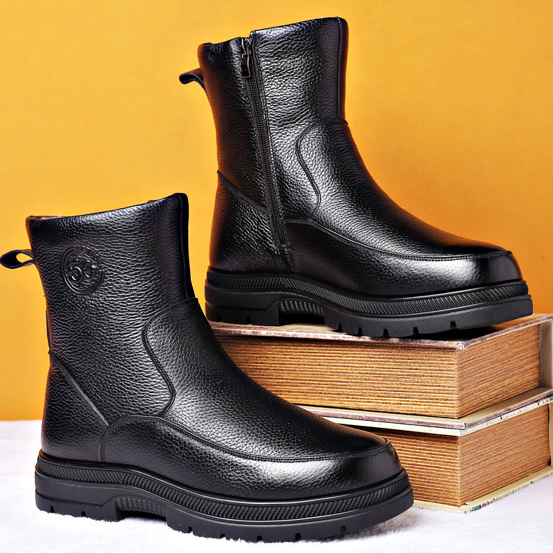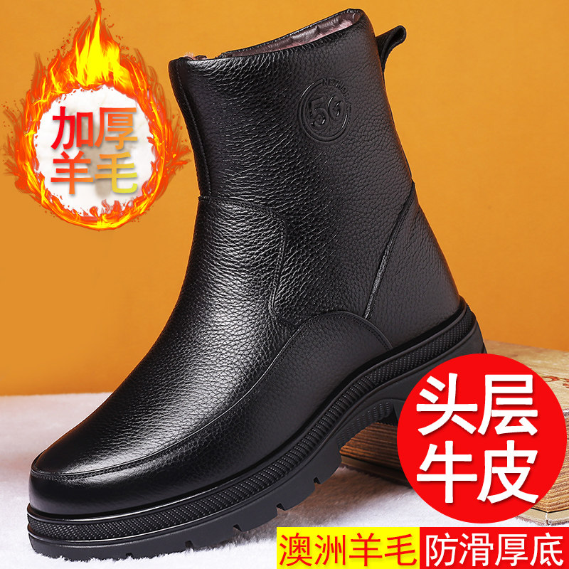 Удерживающие тепло утепленные нескользящие высокие сапоги, из натуральной кожи