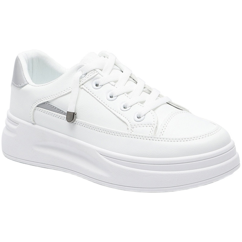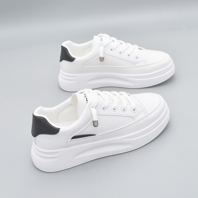 Белая обувь на платформе, универсальная спортивная обувь на плоской подошве, кроссовки, из натуральной кожи, осенняя, коллекция 2023, в корейском стиле
