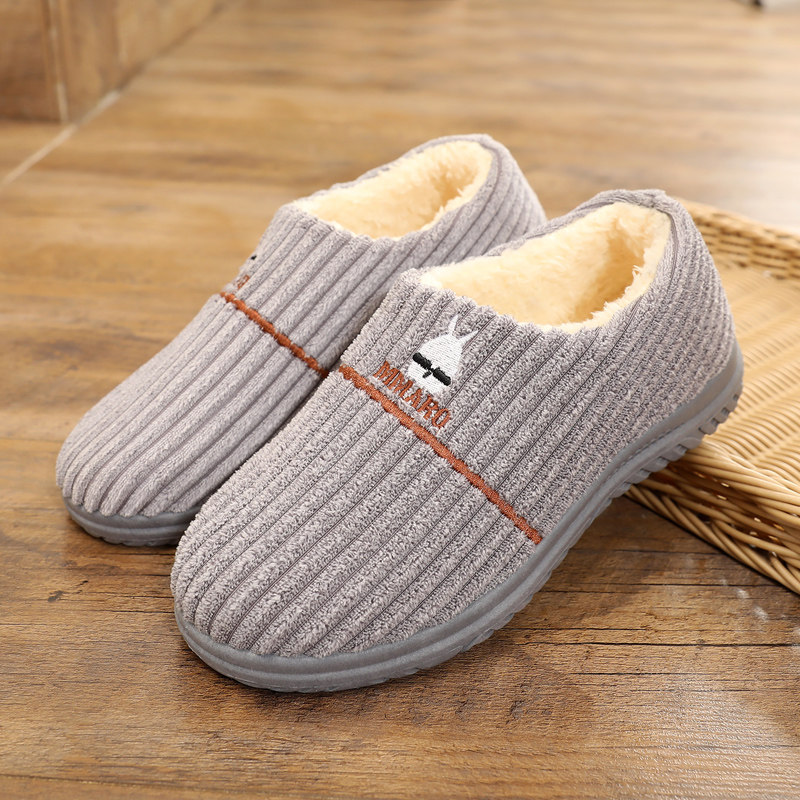 Зимние хлопковые тапочки для мужчин, а также бархатные повседневные хлопковые туфли, теплые туфли для папы для пар, мужские хлопковые тапочки для дома и улицы, вельветовые хлопковые туфли.