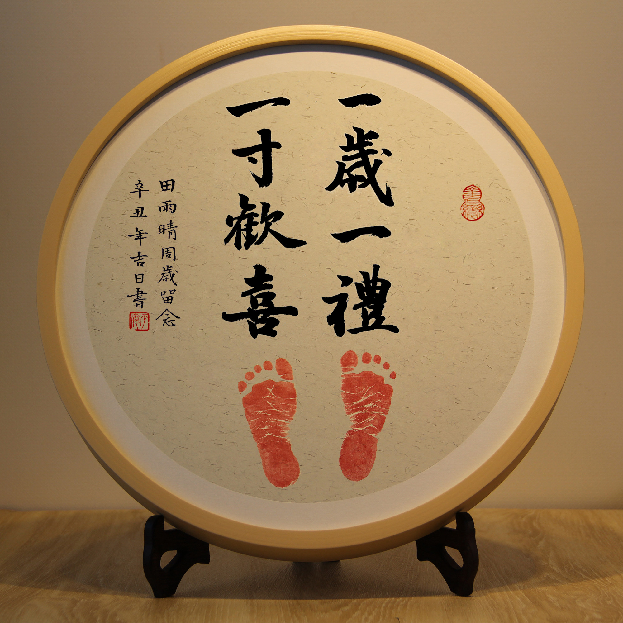 Рукописная каллиграфия, ребенок, рука и печать ног, удовлетворение Чанга, Каллиграфия и живопись, Пинг Ан Антул полнолуний памятный мемориал