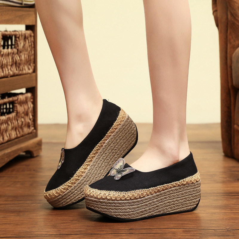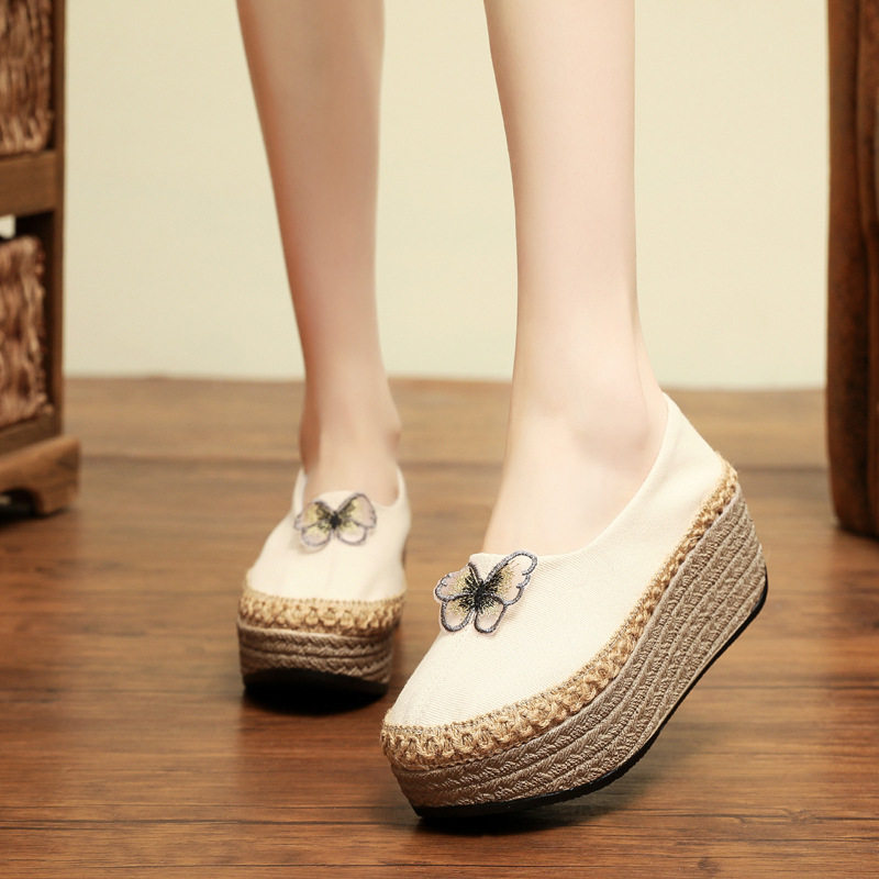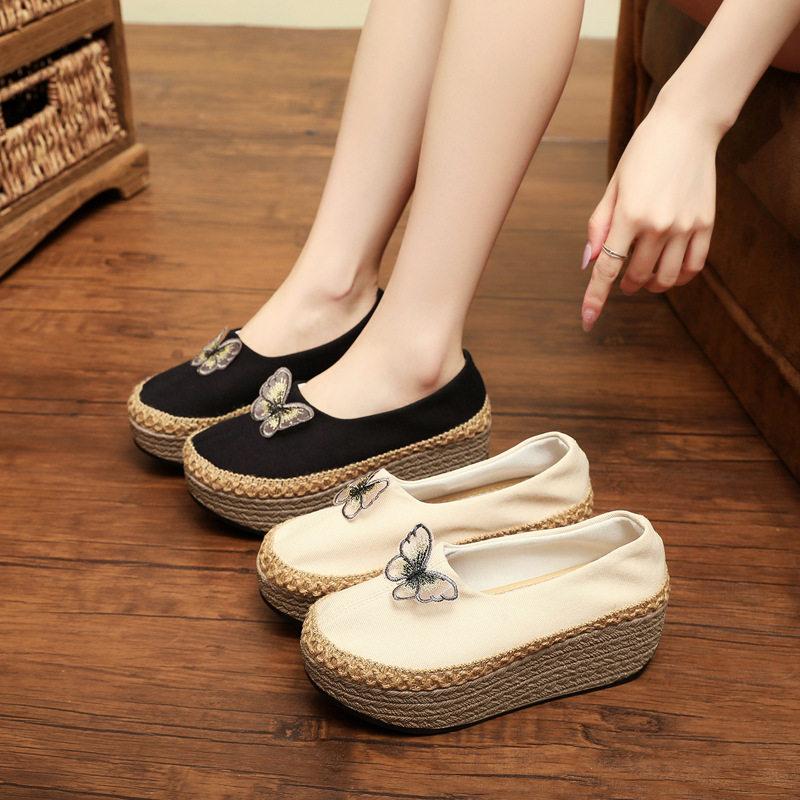 Этнические дышащие слипоны на платформе, ханьфу, обувь, этнический стиль, с вышивкой