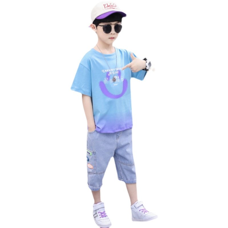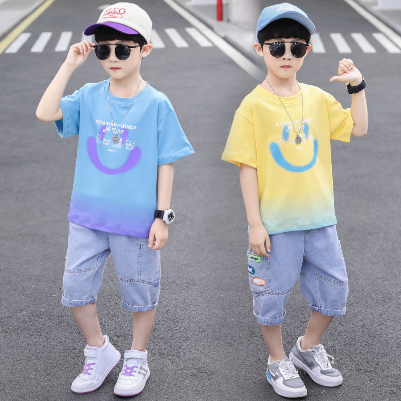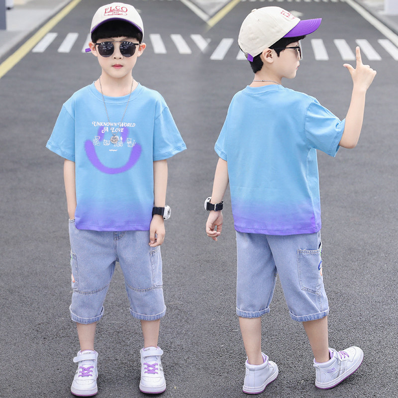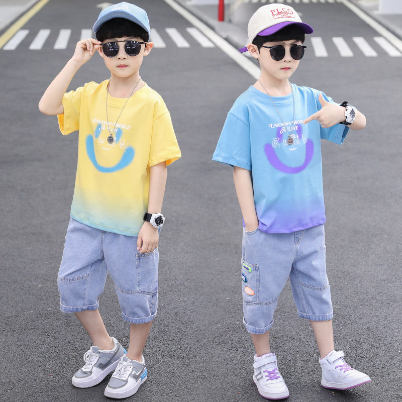 Детский комплект, летняя детская летняя одежда для мальчиков, короткий рукав, в корейском стиле, 9 лет