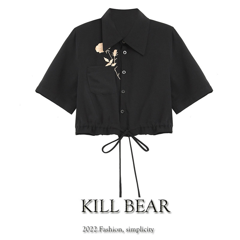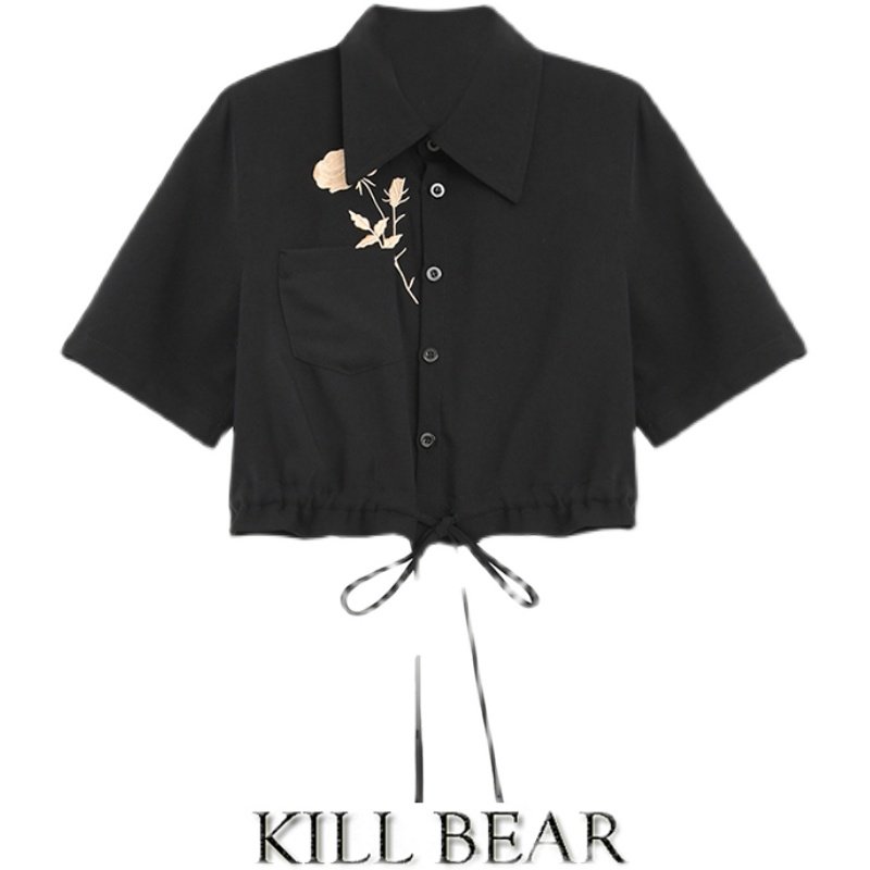 Брендовая дизайнерская летняя короткая рубашка, с вышивкой, тренд сезона