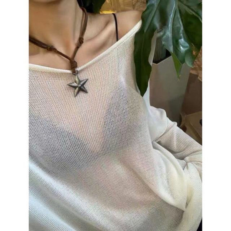 Регулируемая подвеска, кожаное металлическое серебряное ожерелье, длинный свитер, в стиле панк