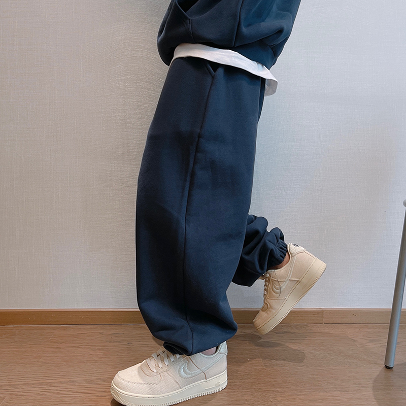 Дэнниндзи весенний прилив бренд ретро Хай -стрит Универсальный чистый цвет силуэт 500G Тяжелые ватные шерстяные брюки Человек