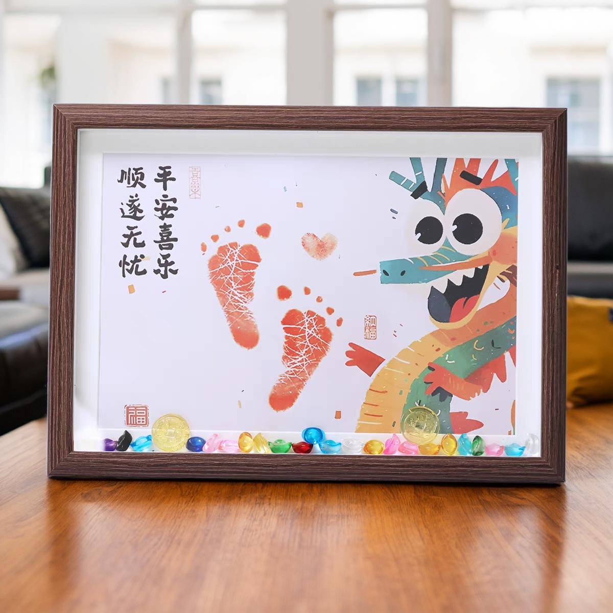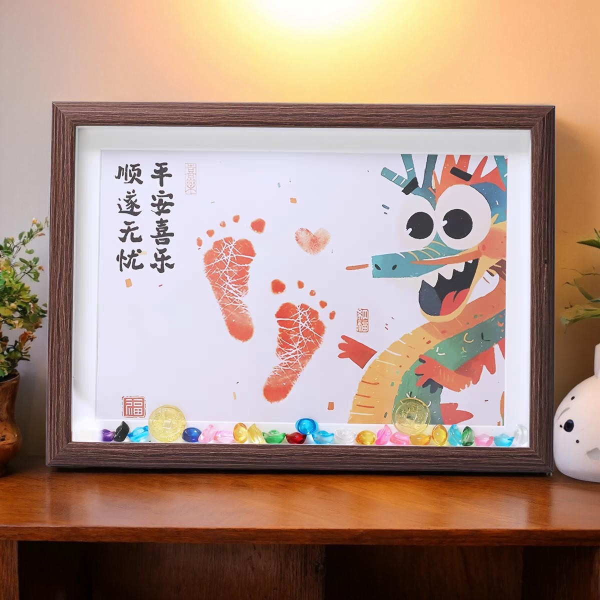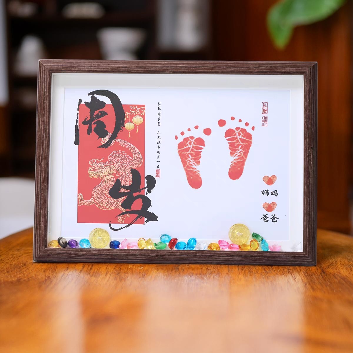Памятная фоторамка с отпечатком руки и ноги месячного ребенка, 100 дней отпечатка рук и ног, полый стол, ритуальный смысл ребенка, Год Дракона и Змеи