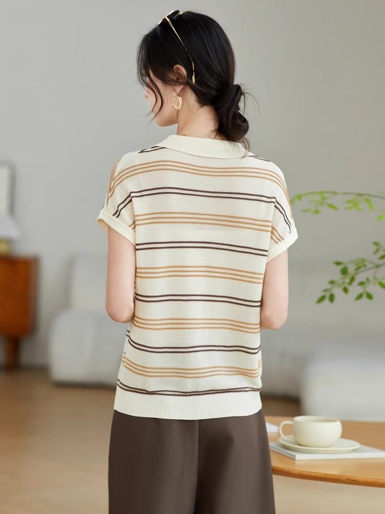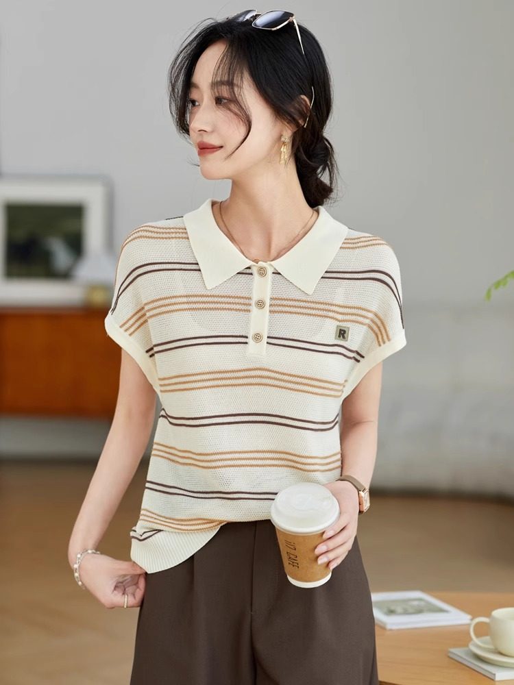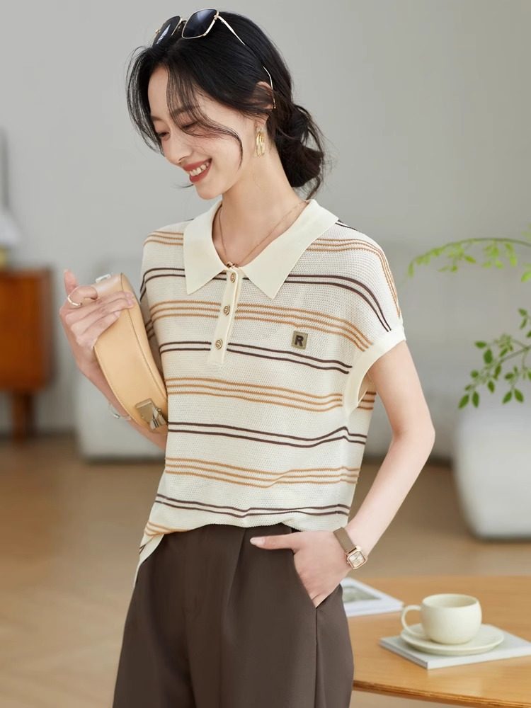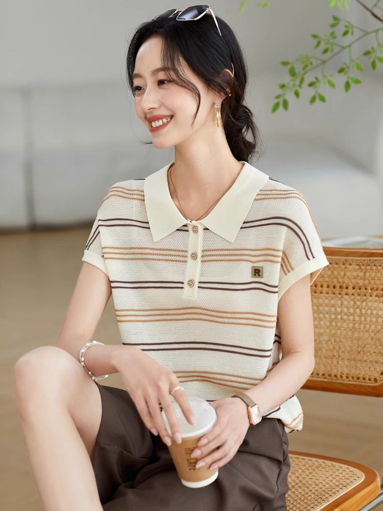 JOLIMENT Летняя футболка для отдыха, трикотажный шелковый свитер, воротник поло