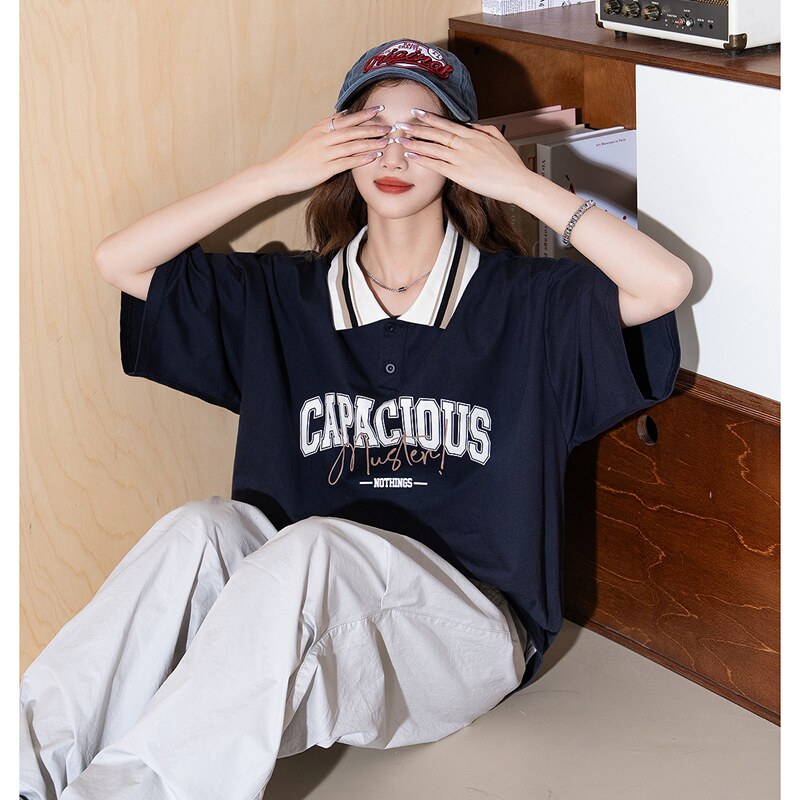 Летняя футболка polo, футболка с коротким рукавом, в американском стиле, оверсайз